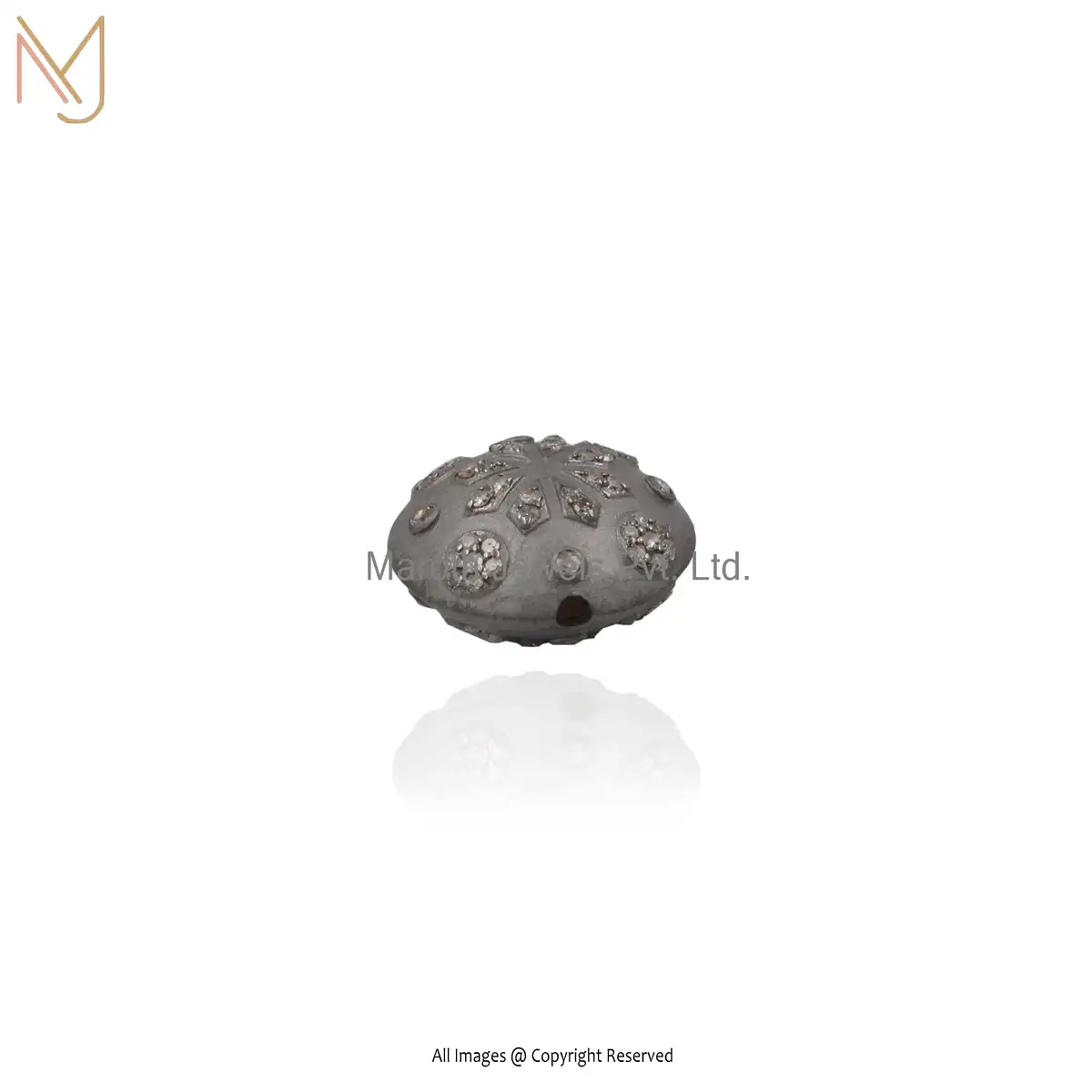 Wholesale 925 Silver Gray Rhodium Plated Pave Diamond Designer Beads Finding Jewelry