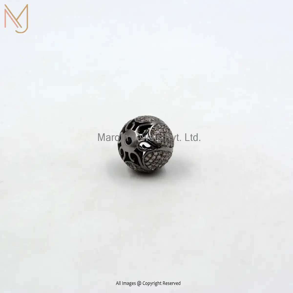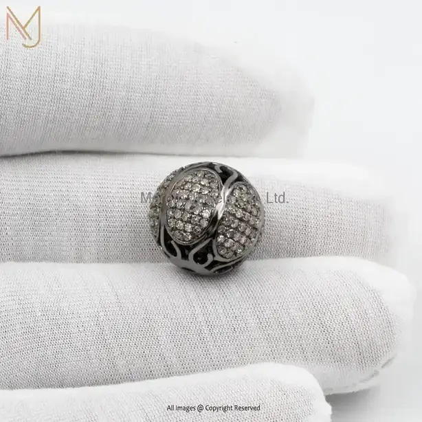 Wholesale 925 Silver Gray Rhodium Plated Pave Diamond Round Ball Beads Finding