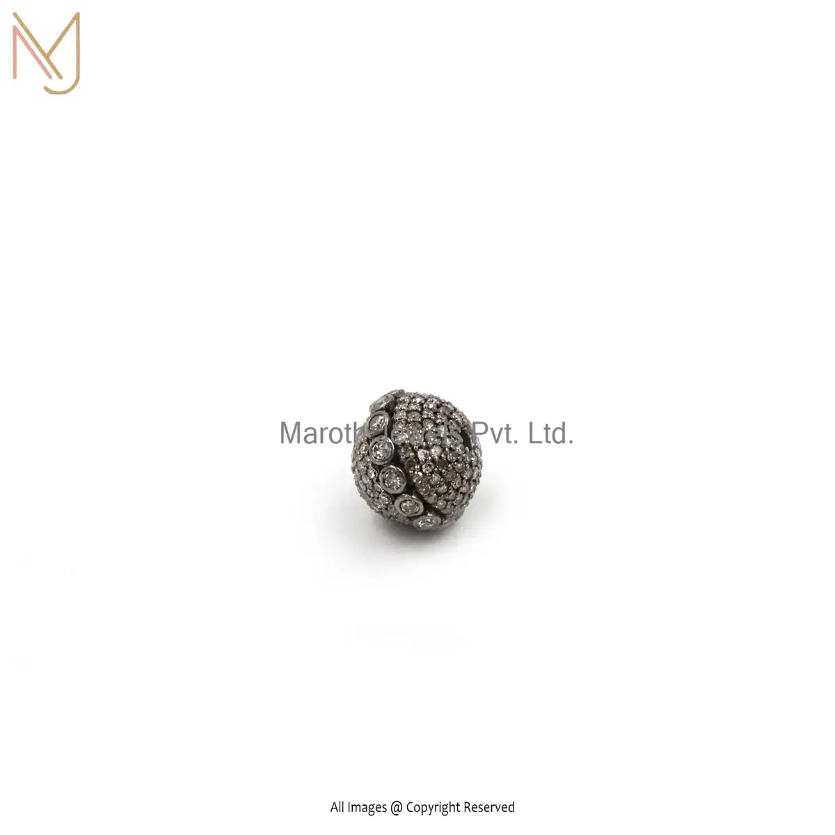 Wholesale 925 Silver Gray Rhodium Plated Pave Diamond Round Beads Finding Jewelry