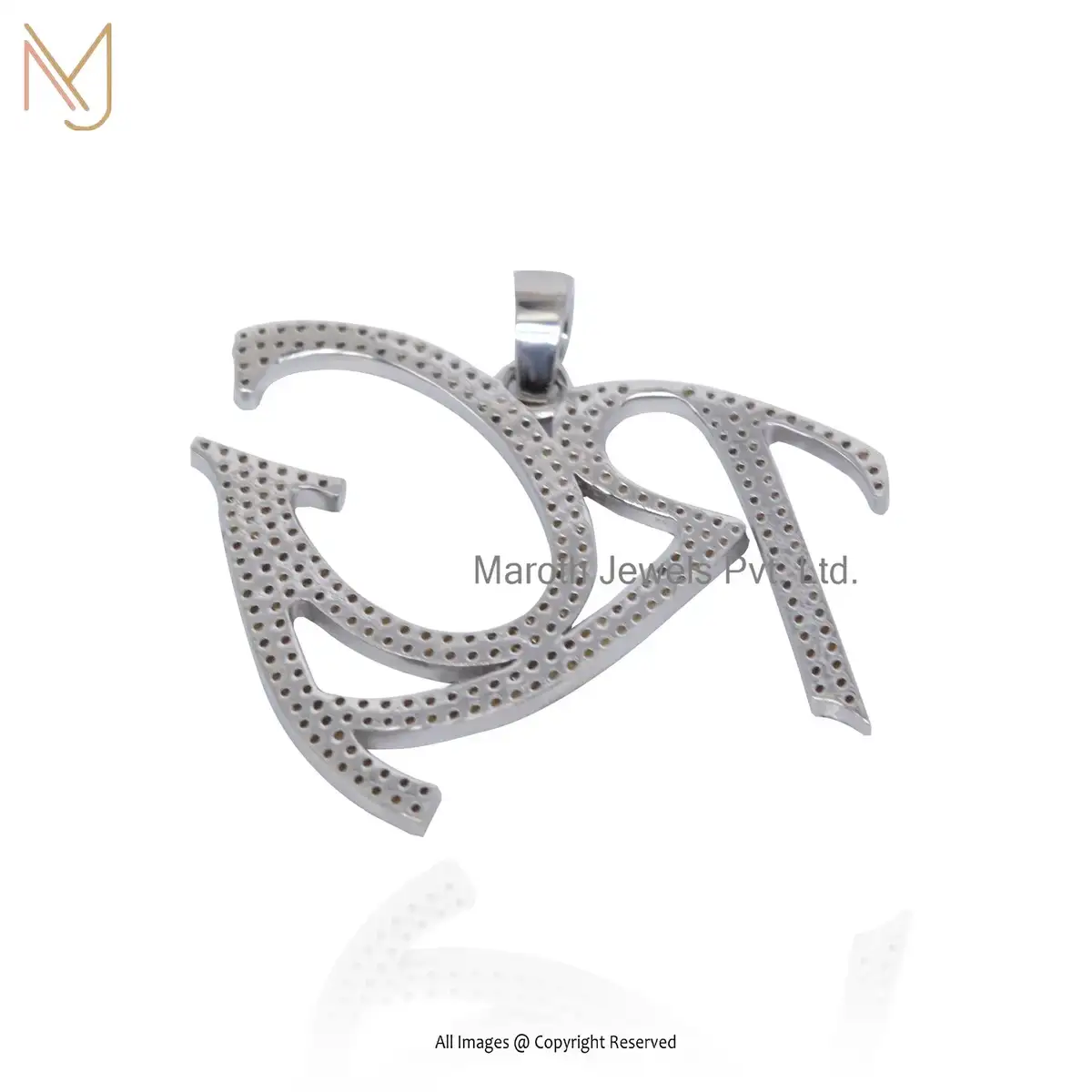 Wholesale 925 Silver Natural Silver Pave Diamond RG Letter Pendant