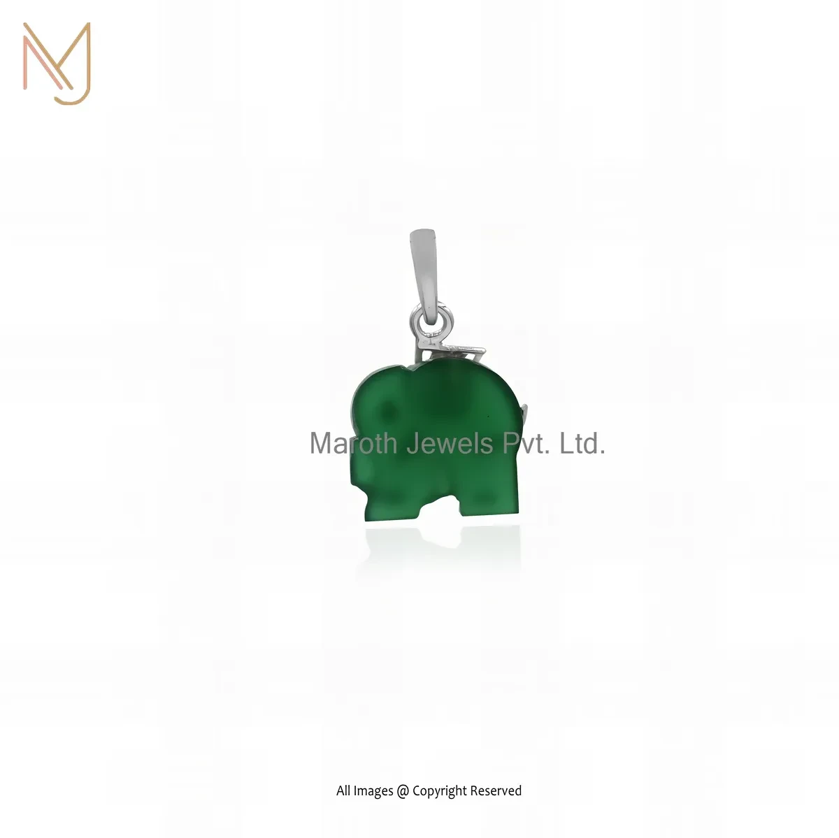 Wholesale 925 Silver Natural Silver Plated Green Onyx & Black Spinel Gemstone Elephant Pendant