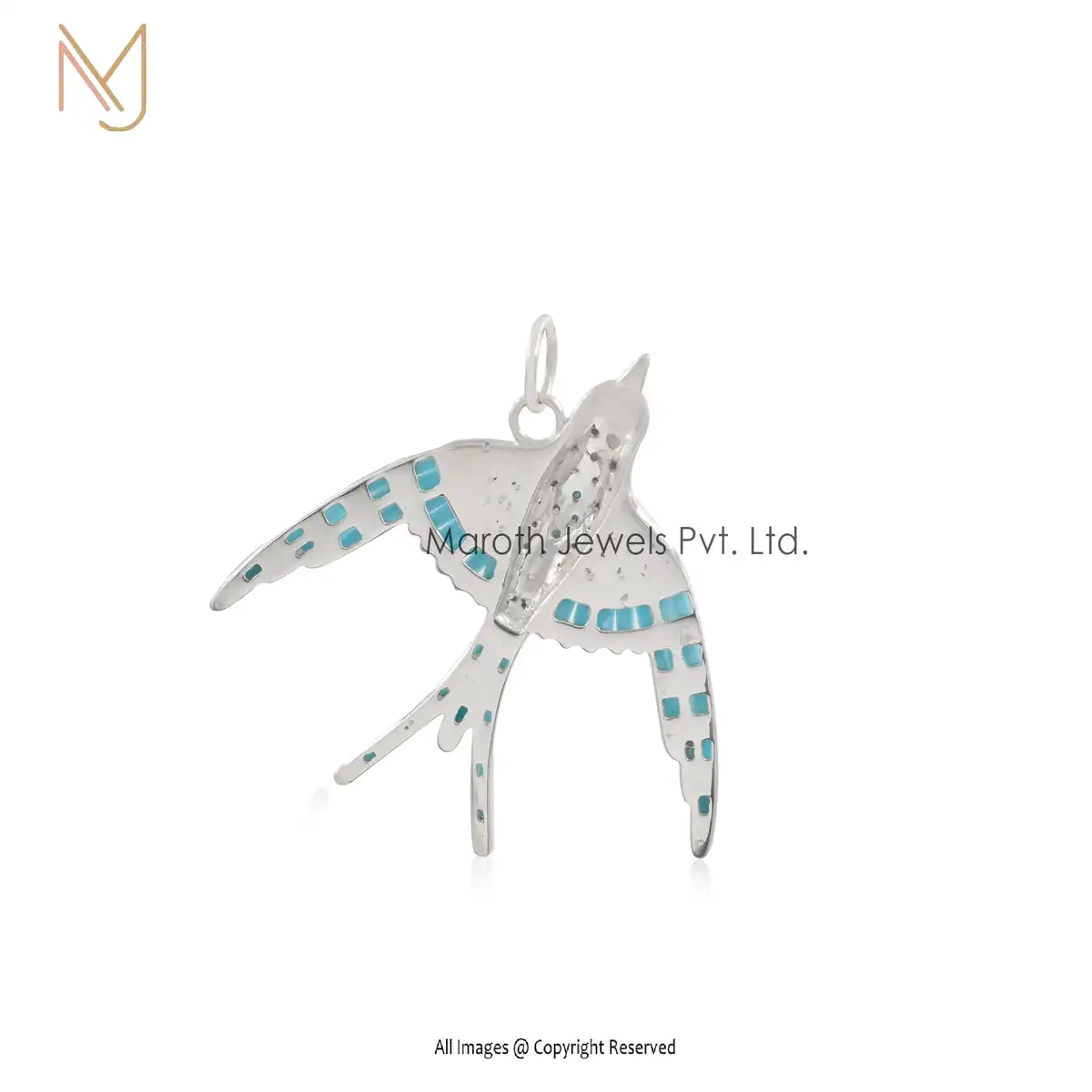 Wholesale 925 Silver Natural SIlver Plated Turquoise Gemstone Bird Pendant Jewelry