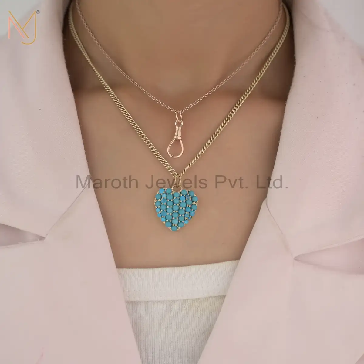 Wholesale 925 Silver Natural Silver Turquoise Heart Pendant Jewelry