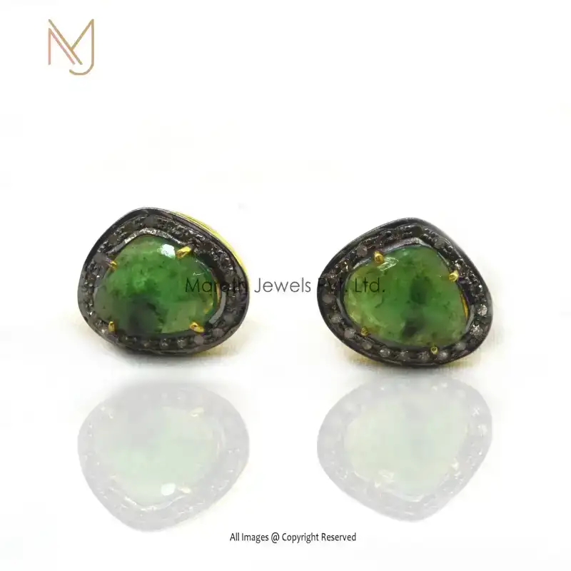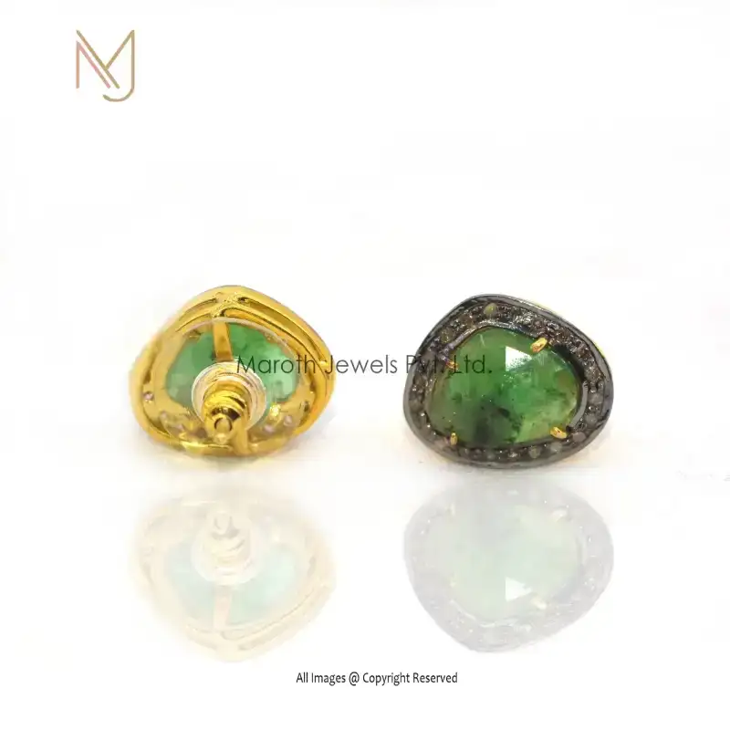 Wholesale 925 Silver Pave Diamond Emerald Gemstone Stud Earring For Women Suppliers