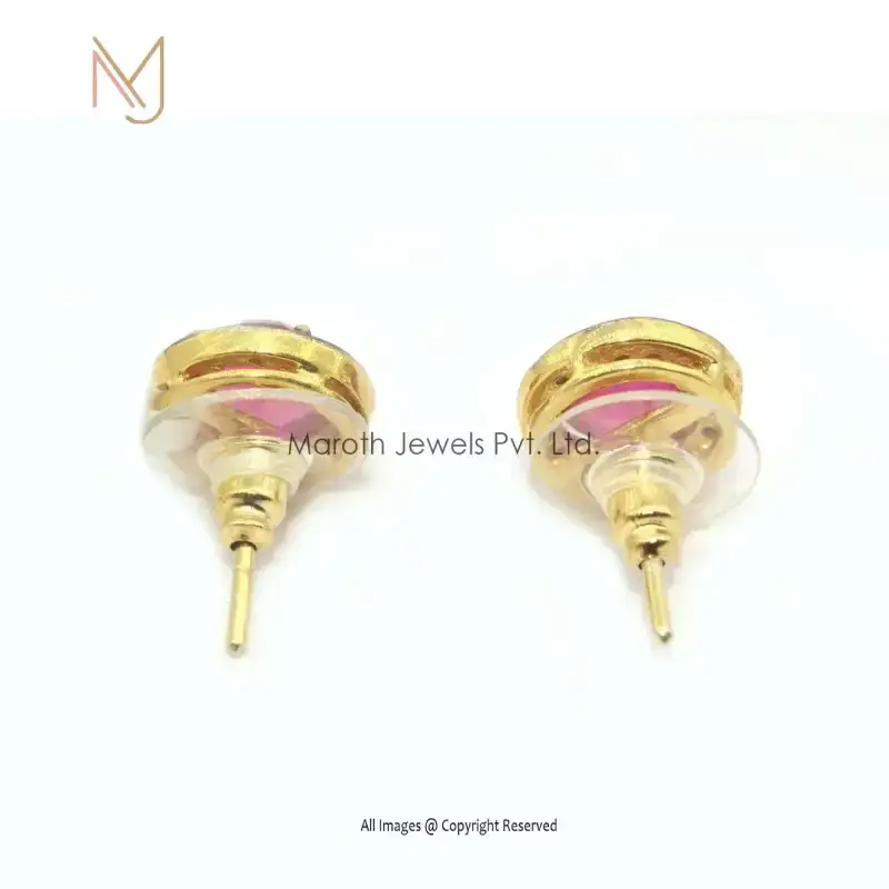 Wholesale 925 Silver Pave Diamond Ruby Gemstone Drop Studs Earrings Jewelry