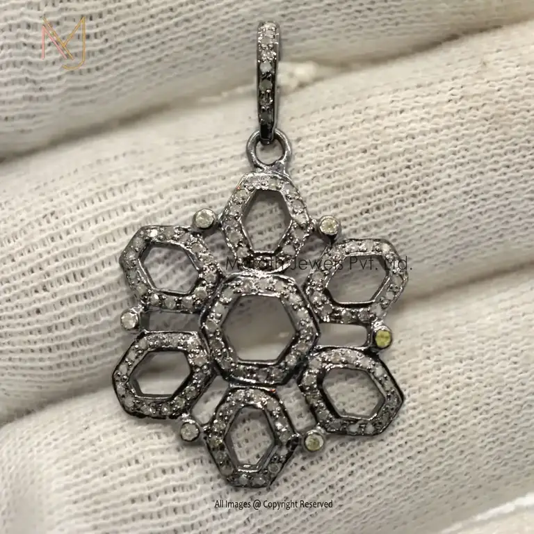 Wholesale 925 Silver Rhodium Pave Diamond Chakra Flower Pendant Jewelry