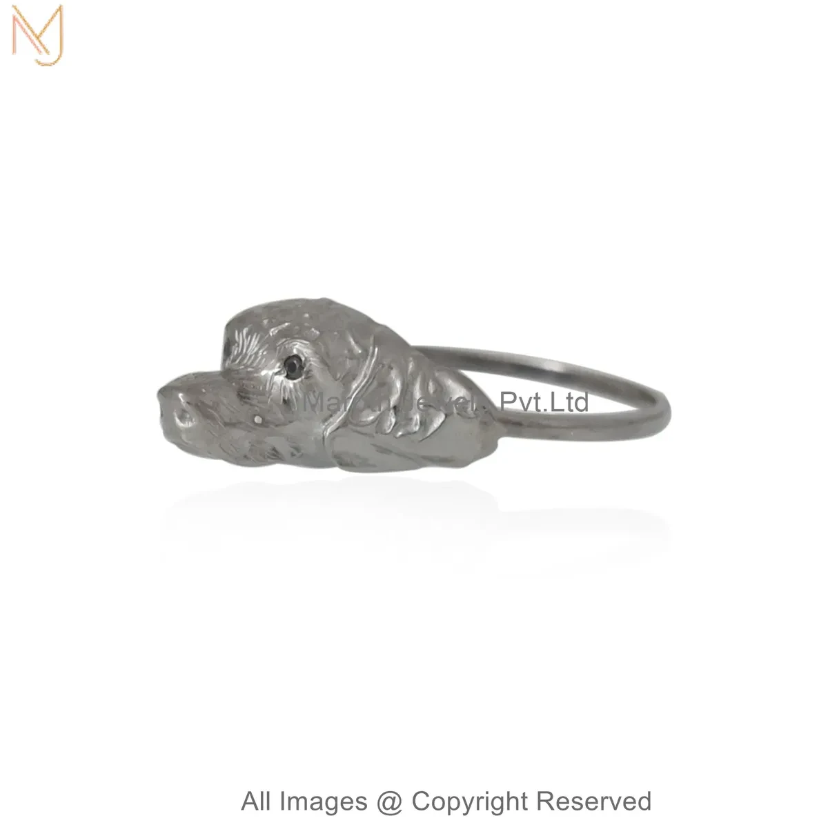 Wholesale 925 Silver Rhodium Plated Black Cubic Zircon Royal Bulldog Face Statement Ring