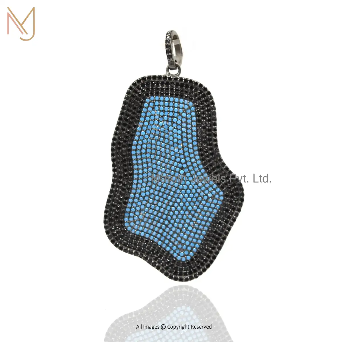 Wholesale 925 Silver Rhodium Plated Black Diamond And Turquoise Gemstone Uneven Shape Pendant