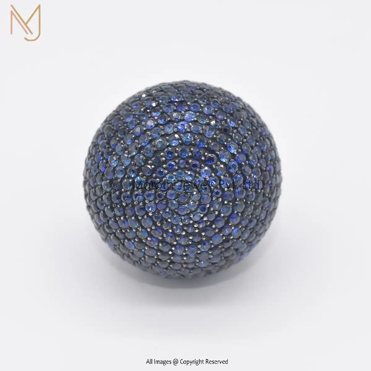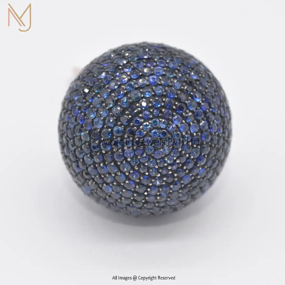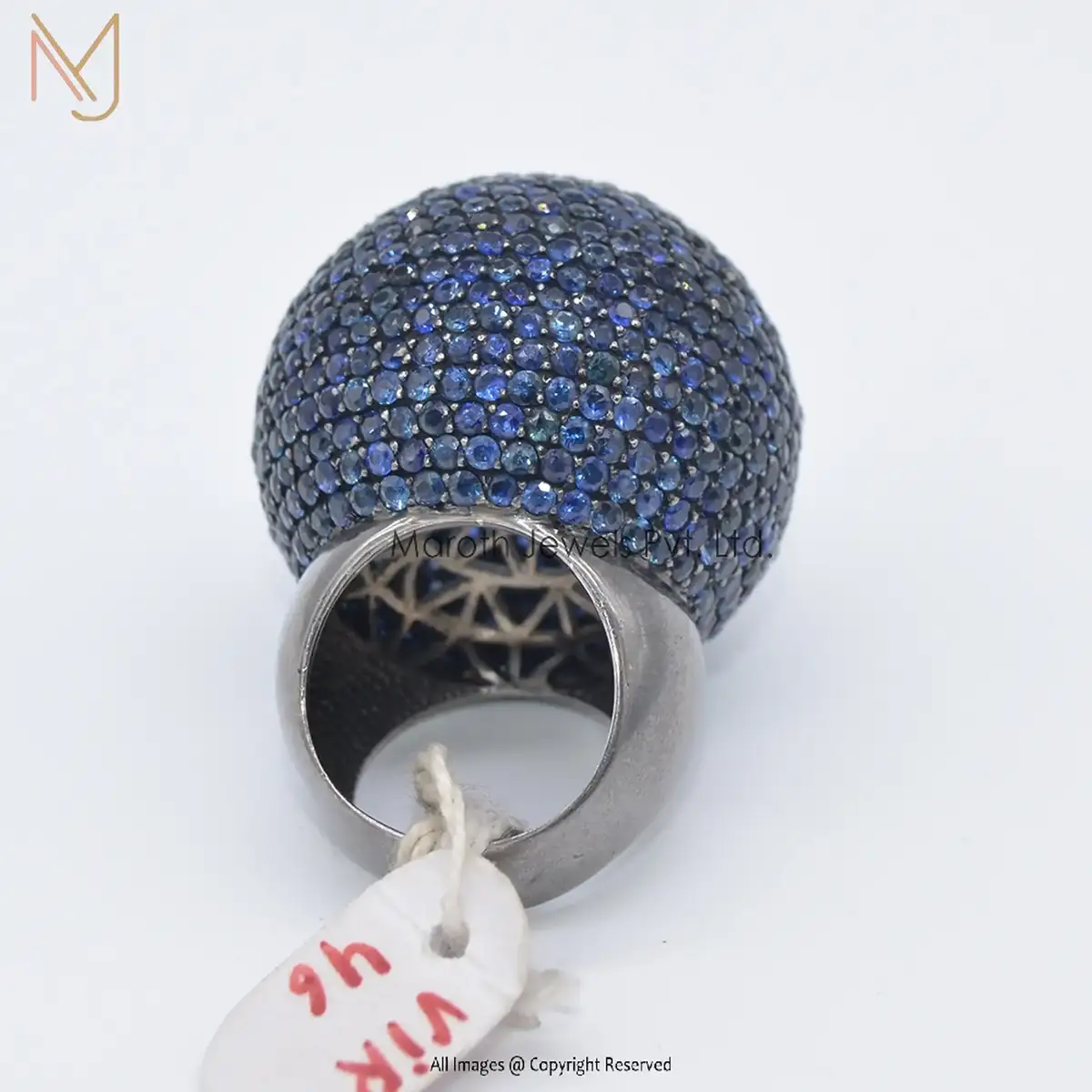 Wholesale 925 Silver Rhodium Plated Blue Sapphire Ring Pave Jewelry