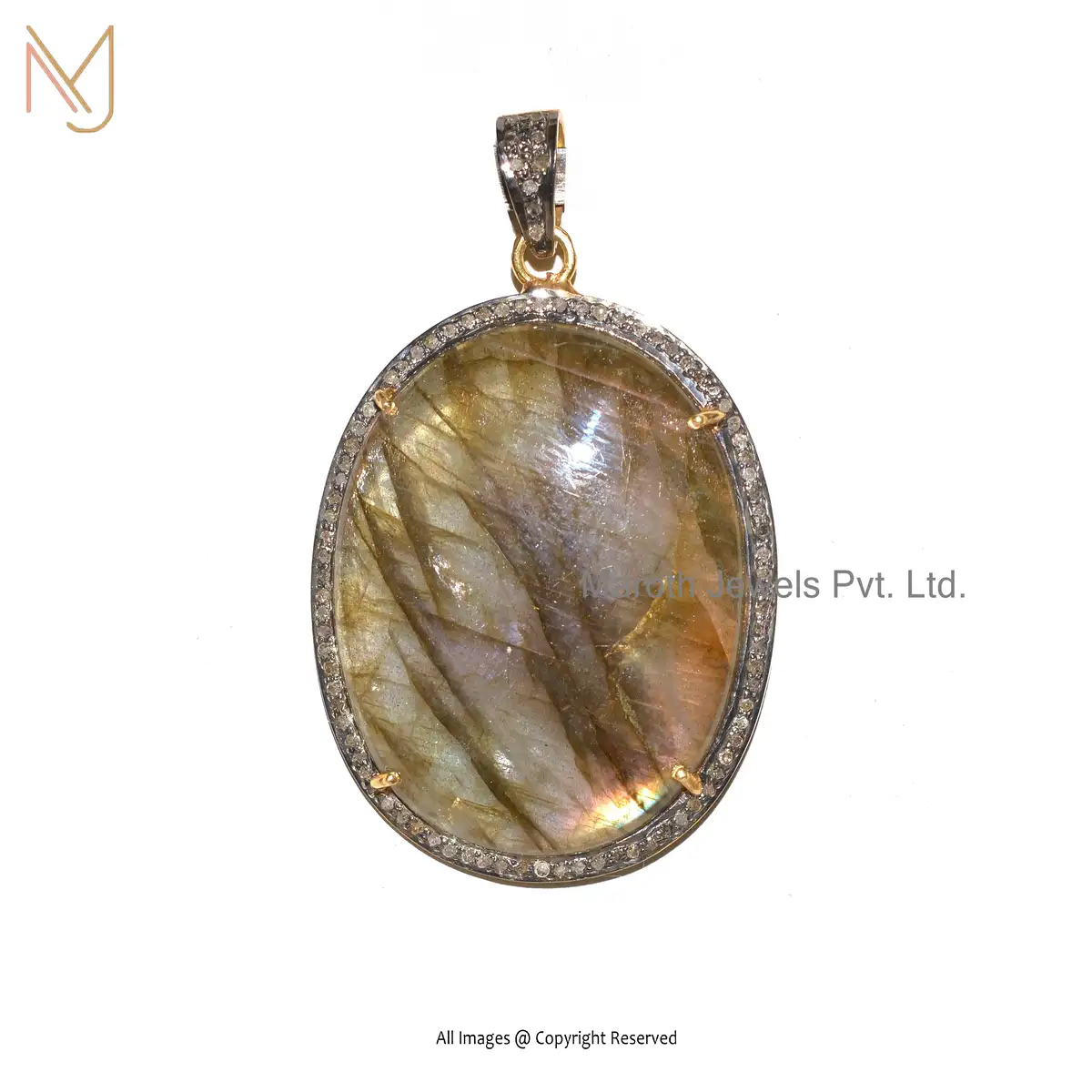 Wholesale 925 Silver Rhodium Yellow Gold Plated Diamond And Labradorite Gemstone Oval Design Pendant Jewelry