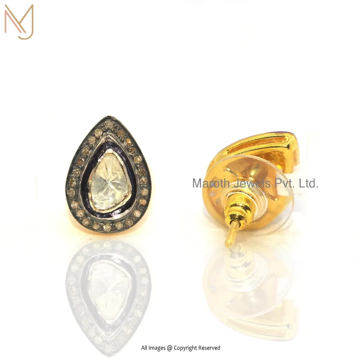 Wholesale 925 Silver Rhodium Yellow Gold Plated Pave Diamond & Polki Rose Cut Diamond Stud Earring
