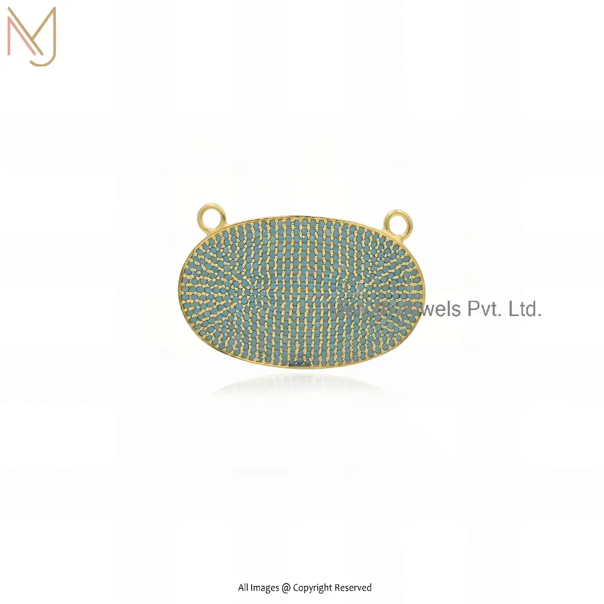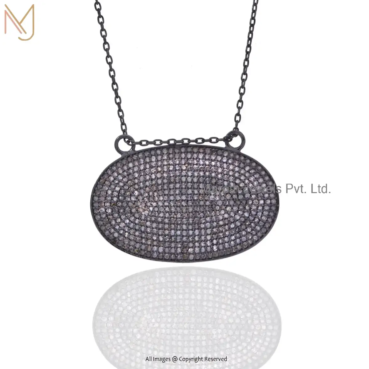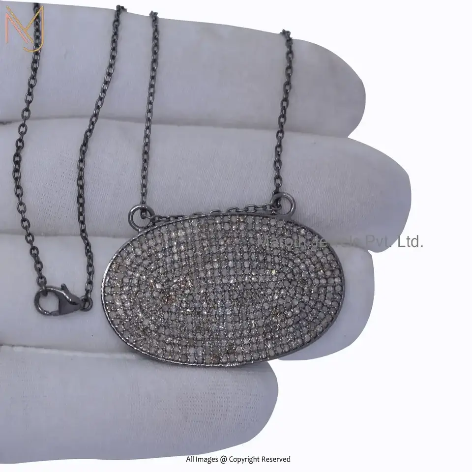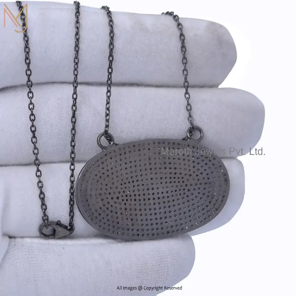 Wholesale 925 Silver Rose Gold Plated Pave Diamond Oval Disc Pendant Jewelry