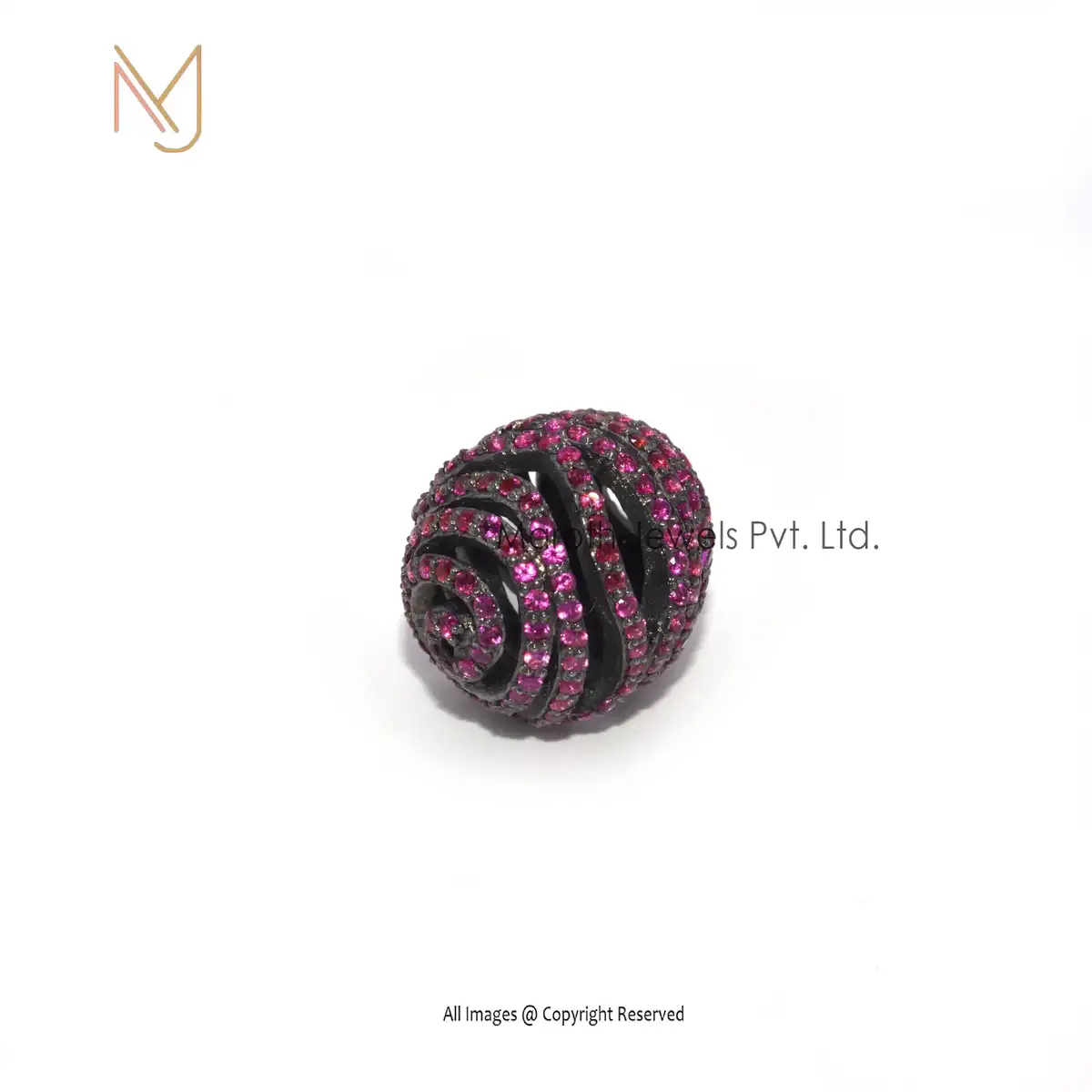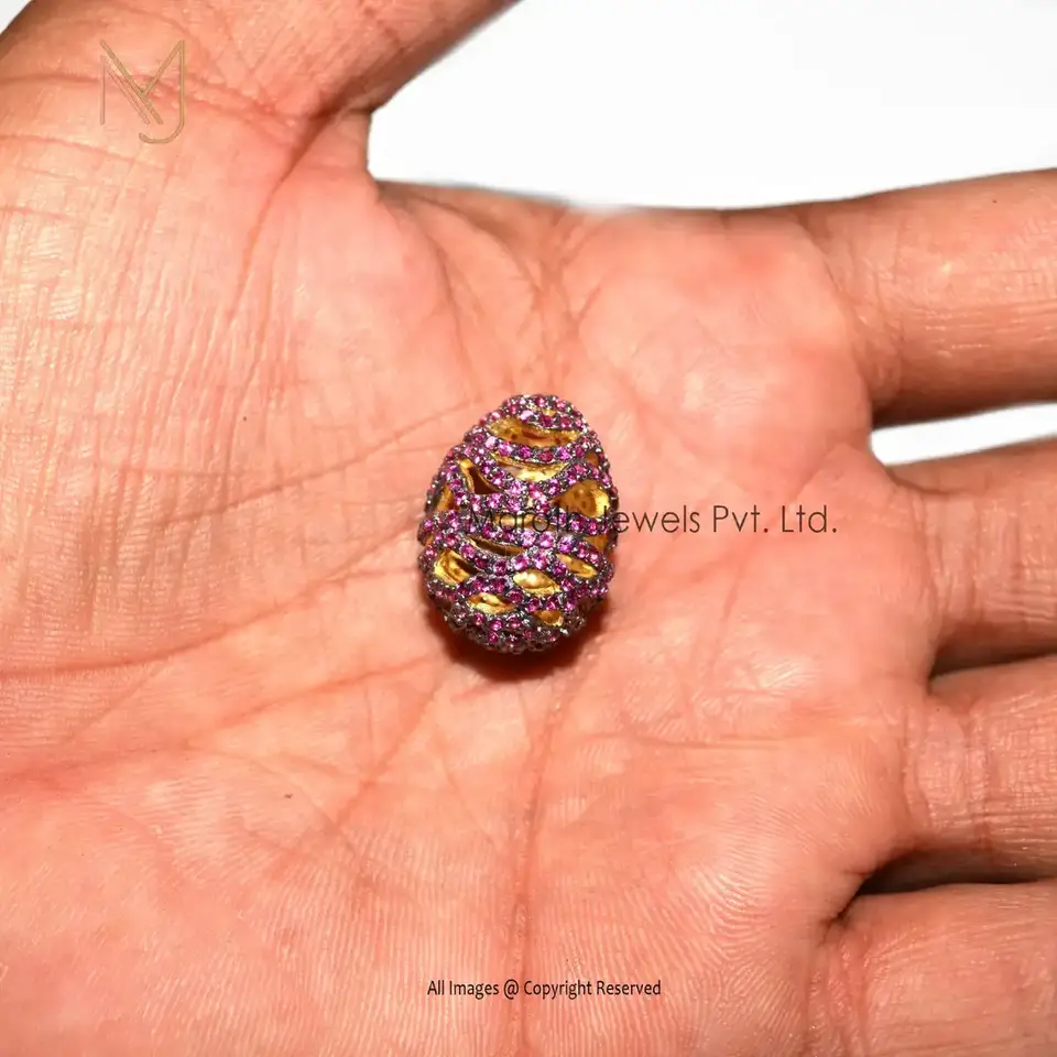 Wholesale 925 Silver Ruby Gemstone Round Beads Pave Connector Finding Jewelry