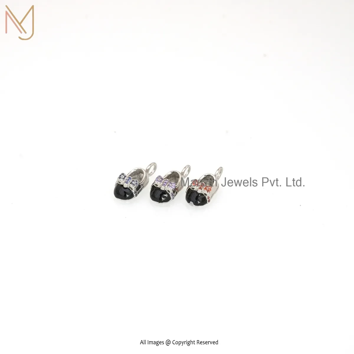 Wholesale 925 Silver White Gold Plated Amethyst & Black Enamel Baby Shoe Charm Pendant