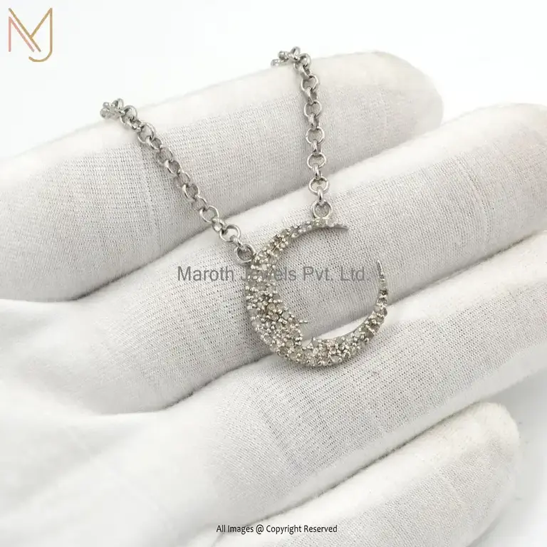 Wholesale 925 Silver White Gold Plated Diamond Crescent Moon Pendant Necklace Jewelry