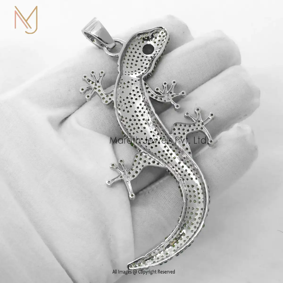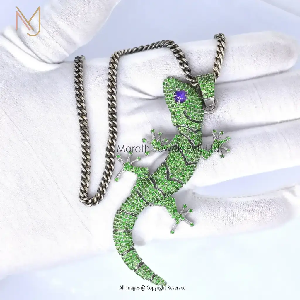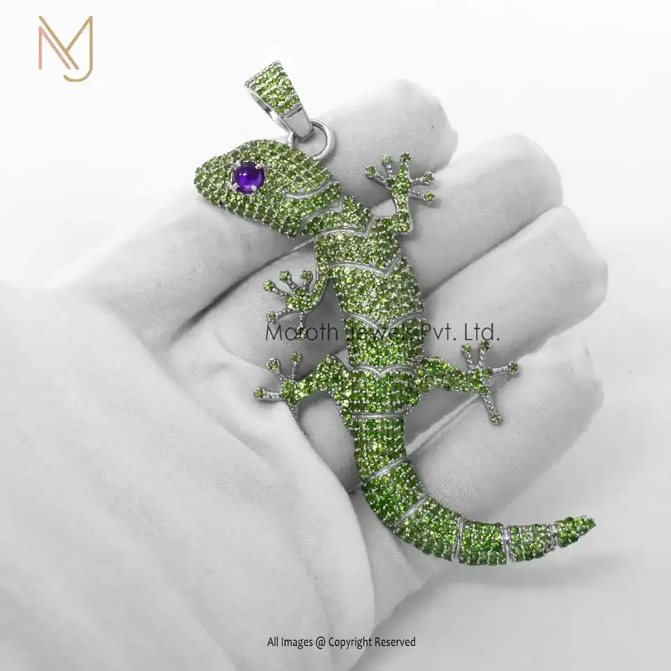 Wholesale 925 Silver White Gold Plated Tsavorite & Amethyst Antique Gecko Lizard Pendant Jewelry