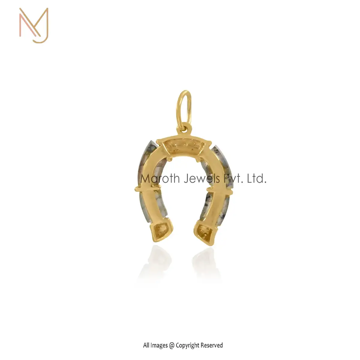 Wholesale 925 Silver Yellow Gold Labradorite & Moissanite Horseshoe Charm Pendant Jewelry