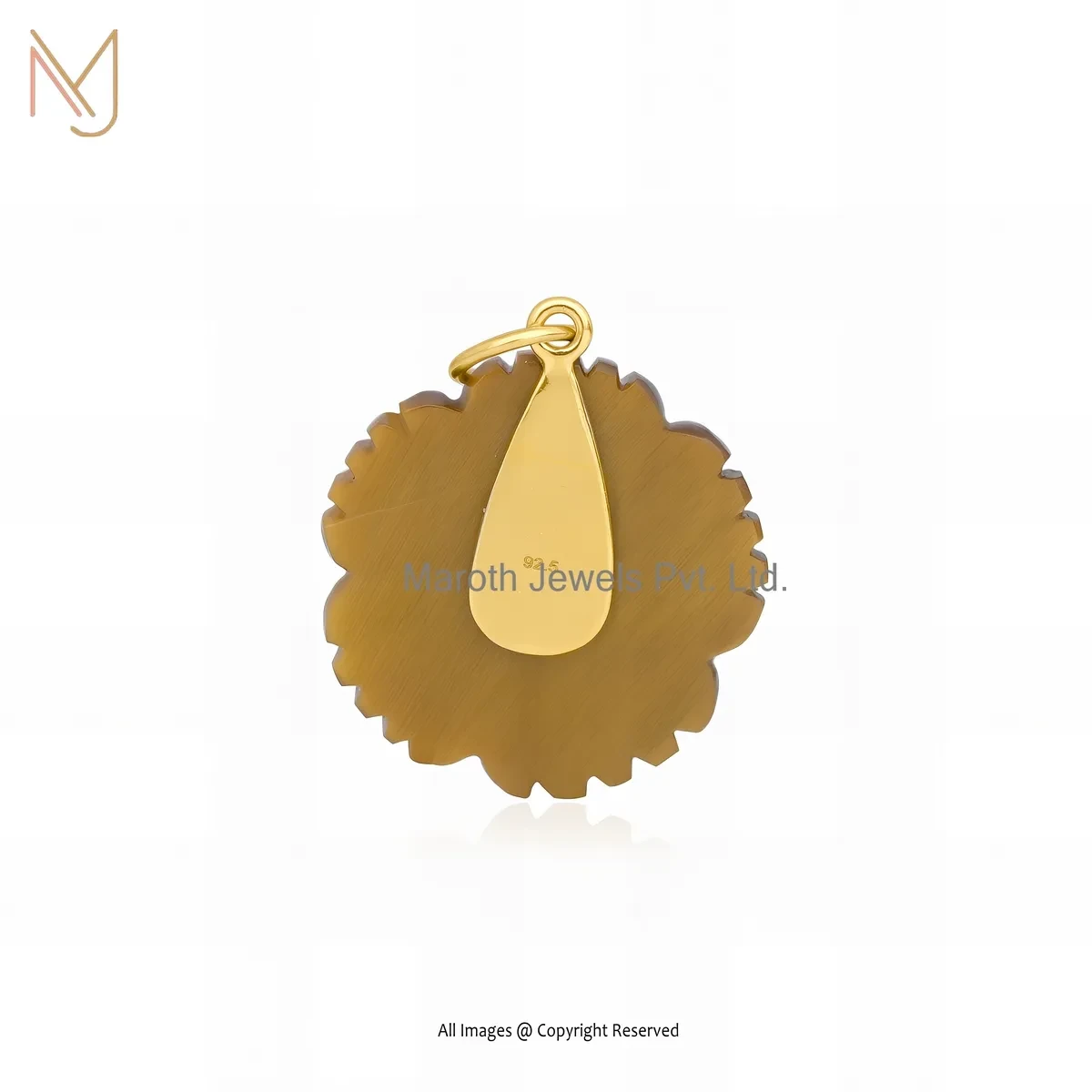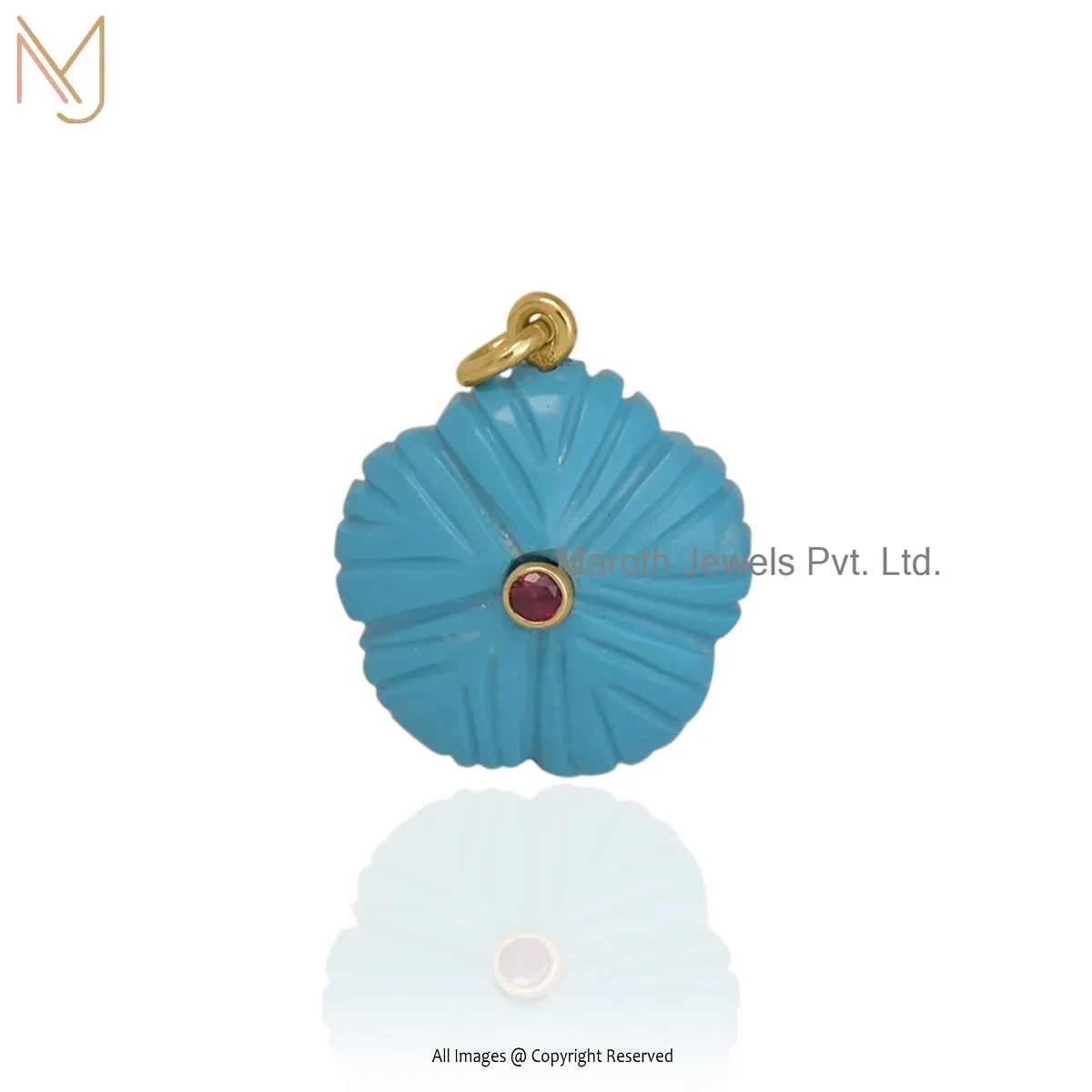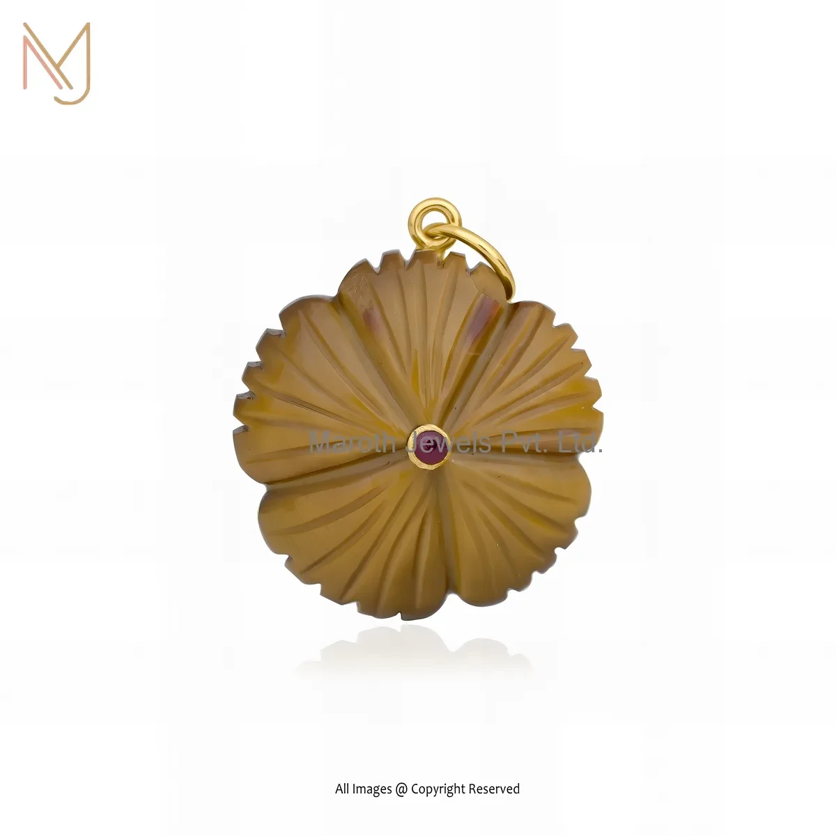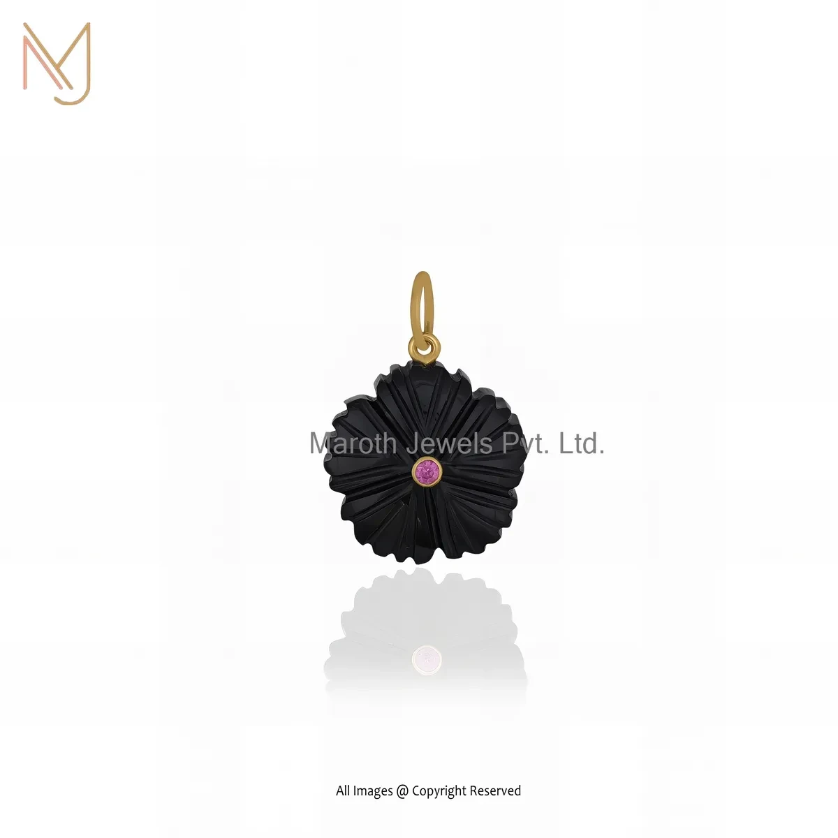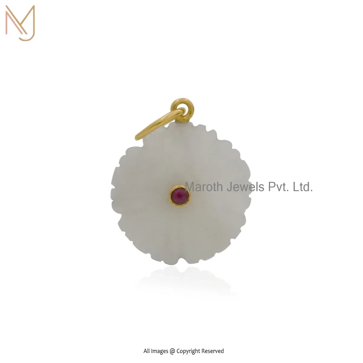 Wholesale 925 Silver Yellow Gold Plated Amethyst & Ruby Cubic Zircon Flower Pendant
