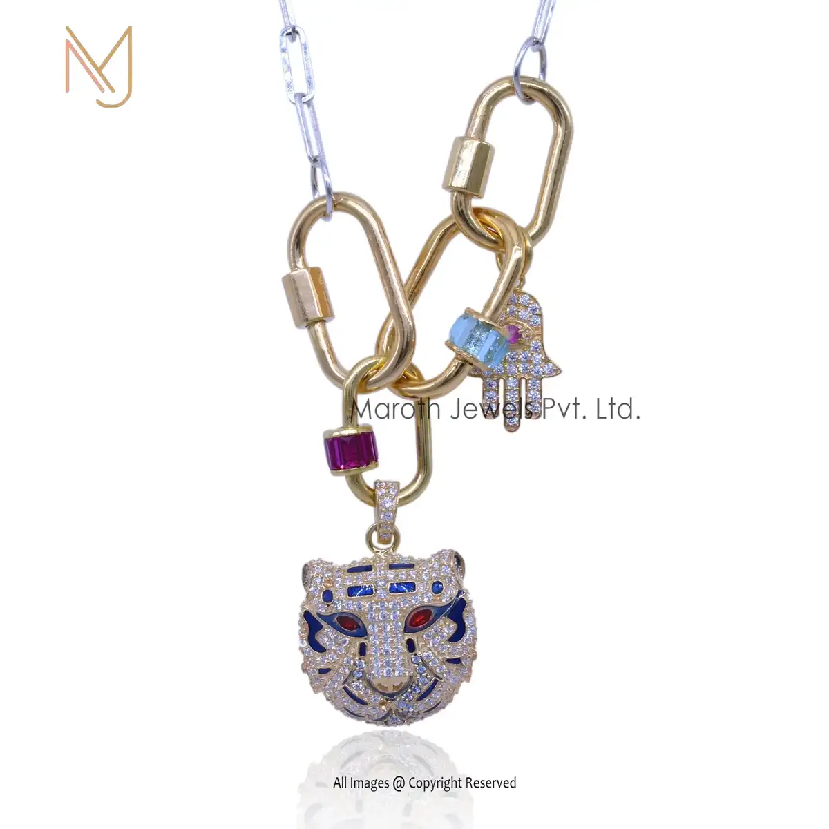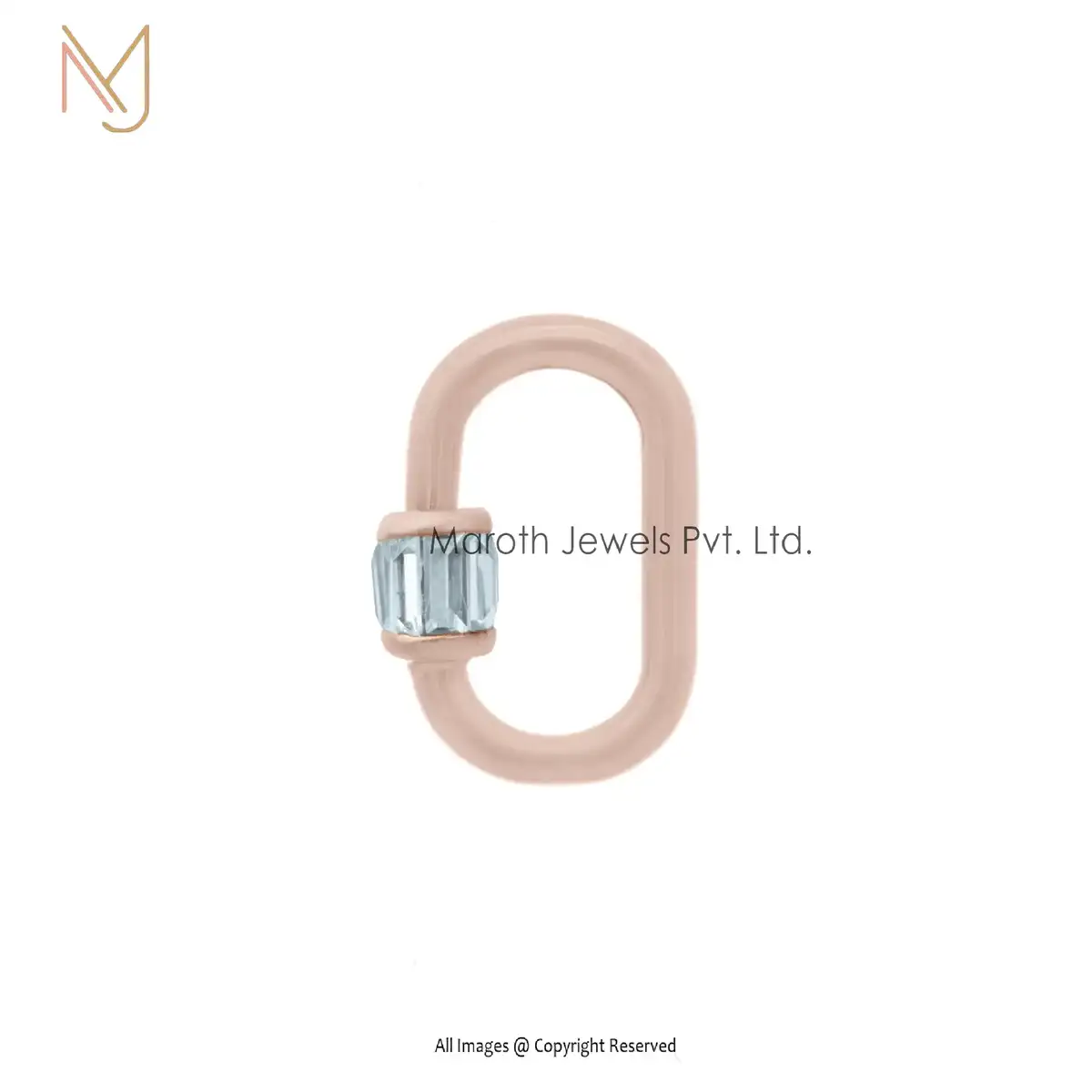 Wholesale 92.5 Silver Yellow Gold Plated Aquamarine Baguettes Carabiner Lock