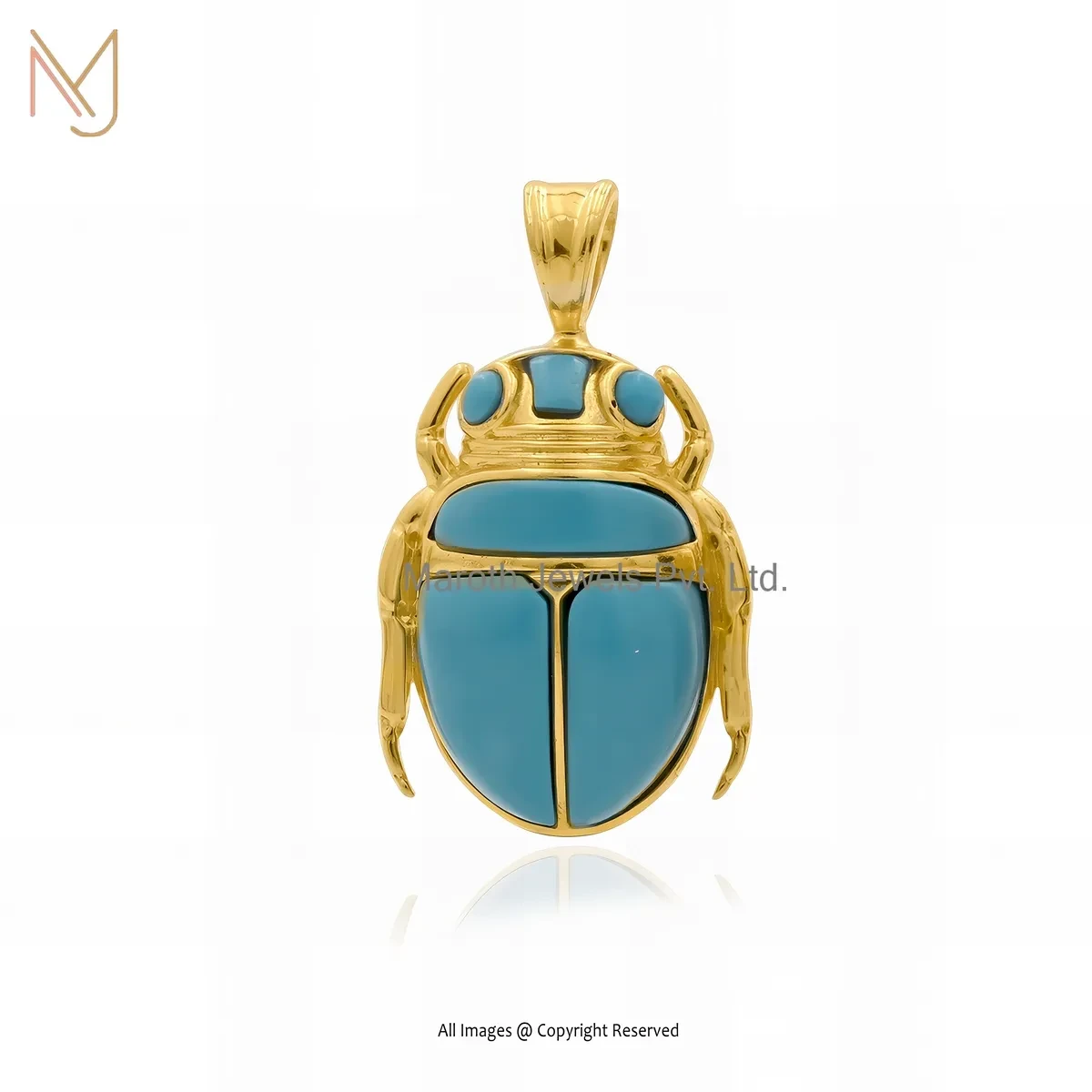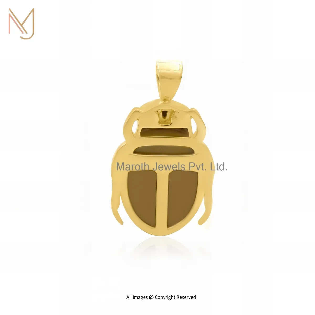 Wholesale 925 Silver Yellow Gold Plated Black Onyx Gemstone Scarab Pendant