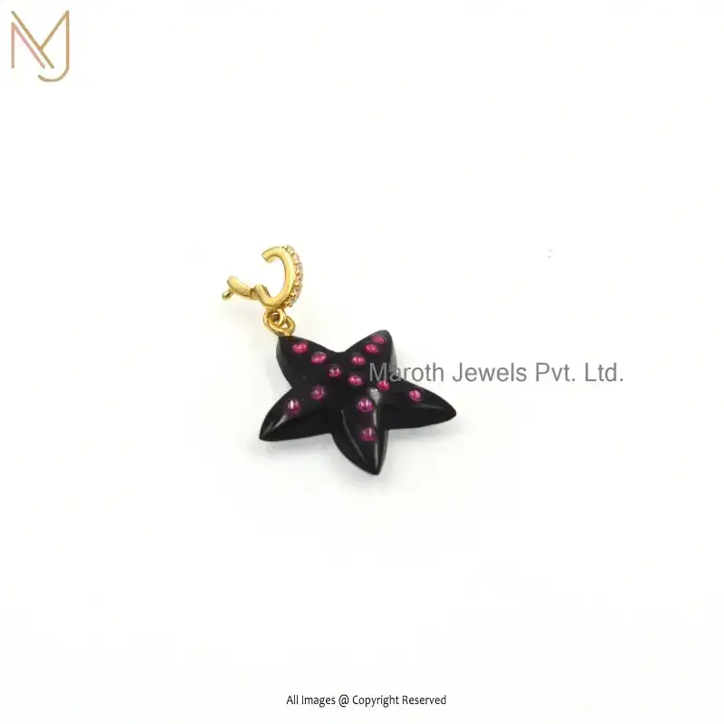Wholesale 925 Silver Yellow Gold Plated Black Onyx & Ruby Starfish Pendant Jewelry