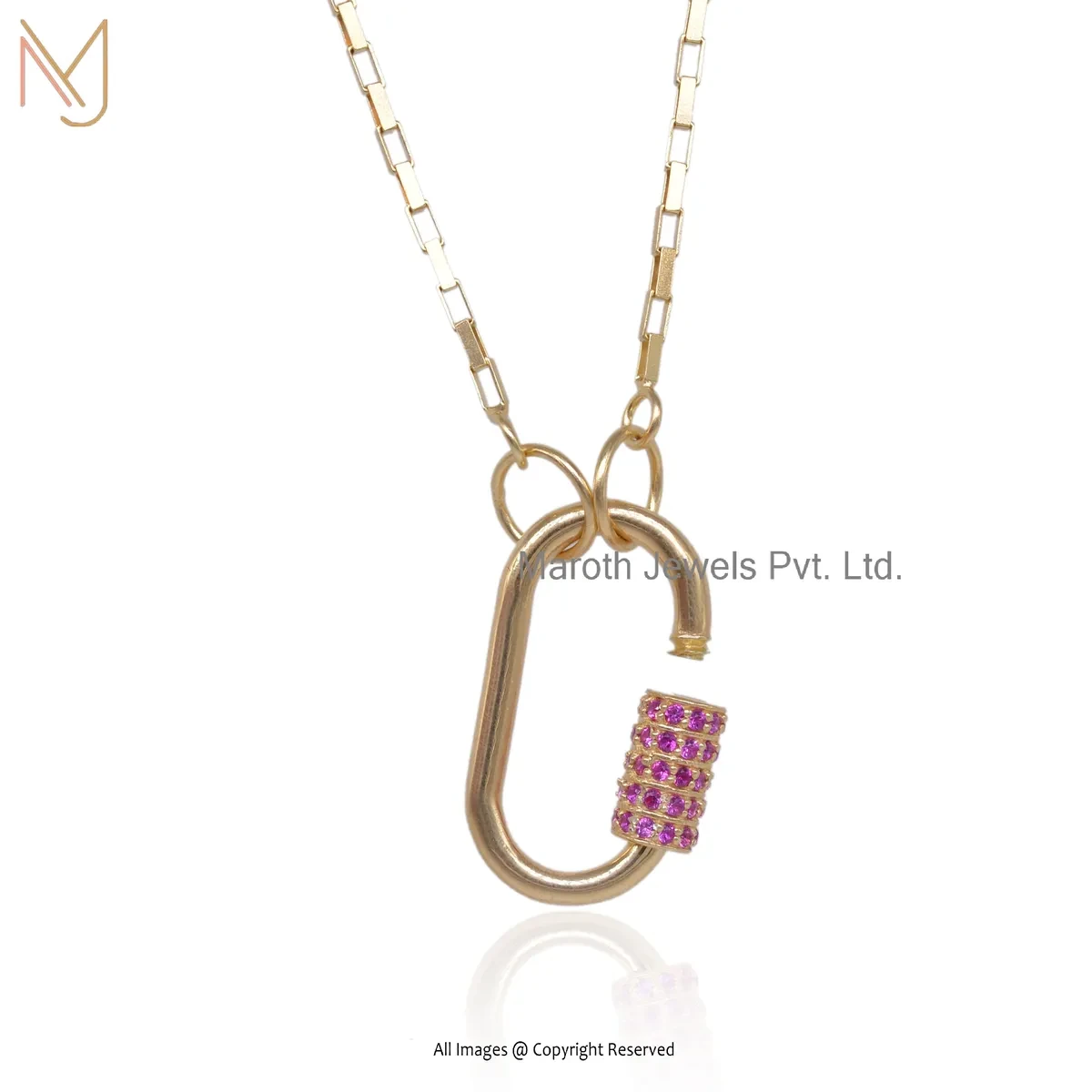 Wholesale 925 Silver Yellow Gold Plated Blue Sapphire Gemstone Carabiner Lock Jewelry
