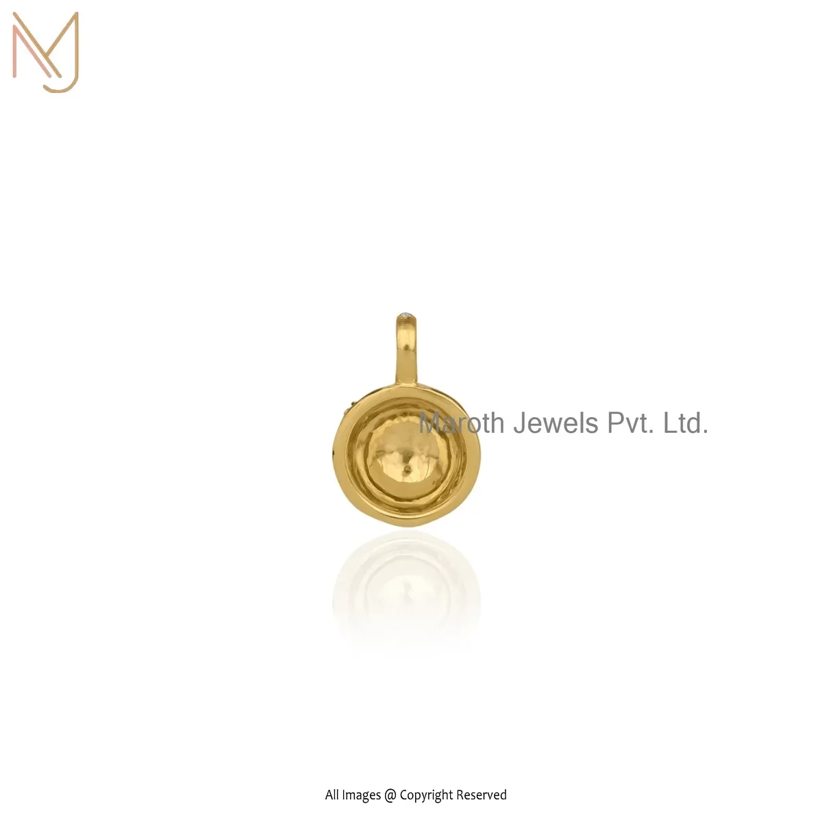 Wholesale 925 Silver Yellow Gold Plated Cubic Zircon & Black Enamel Half Moon Ball Pendant