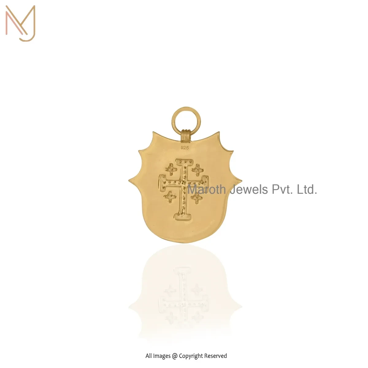 Wholesale 925 Silver Yellow Gold Plated Cubic Zircon Cross Shield Charm Pendant