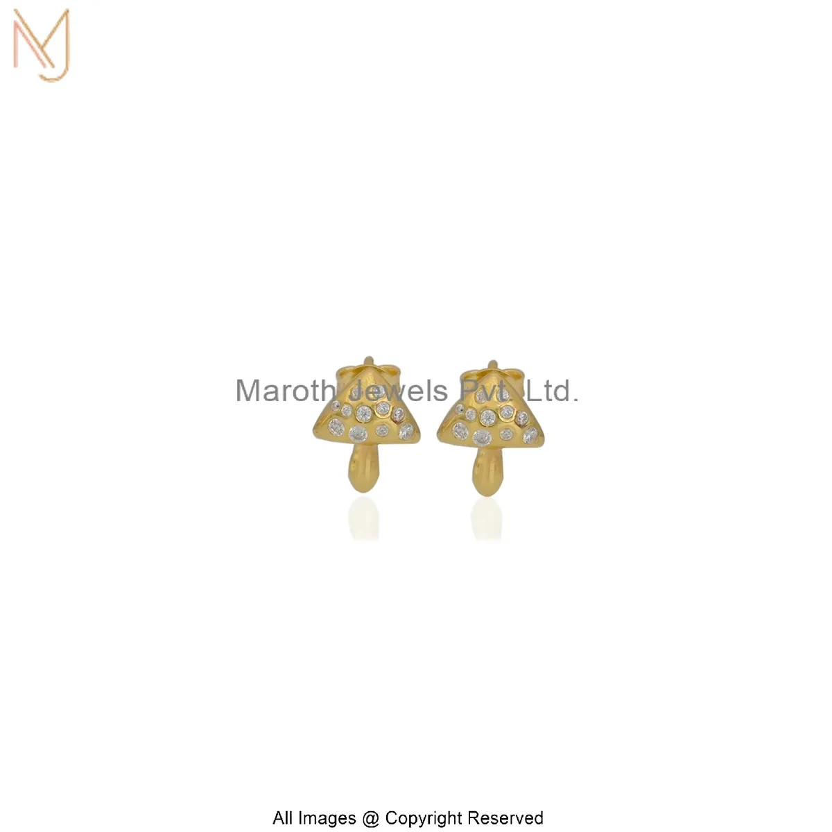 Wholesale 925 Silver Yellow Gold Plated Cubic Zircon Gemstone Gold Tiny Mushroom Stud Earring