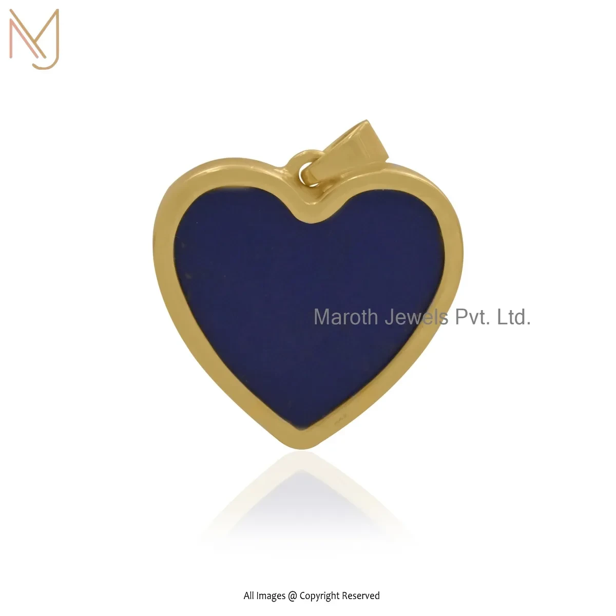 Wholesale 925 Silver Yellow Gold Plated Cubic Zircon & Lapiz Lazuli Heart Pendant