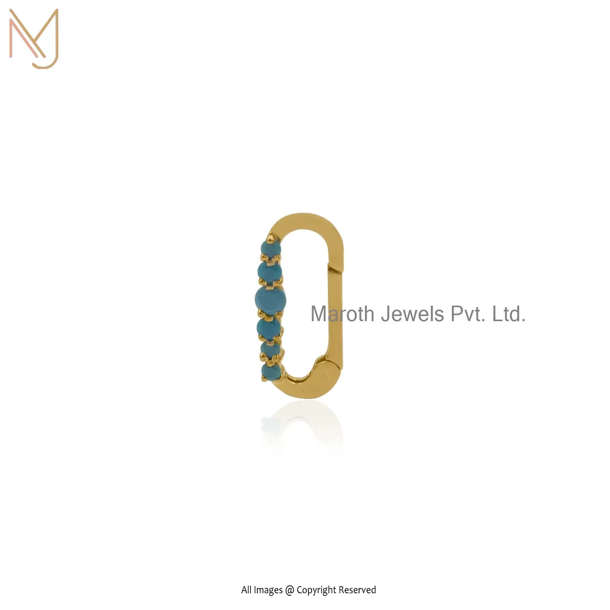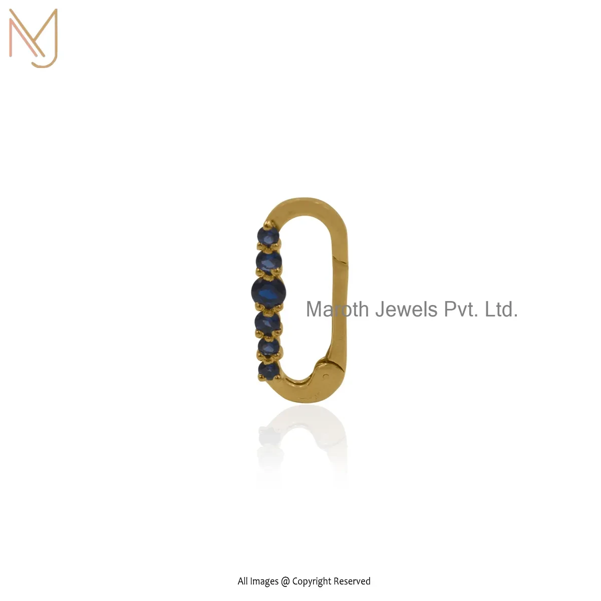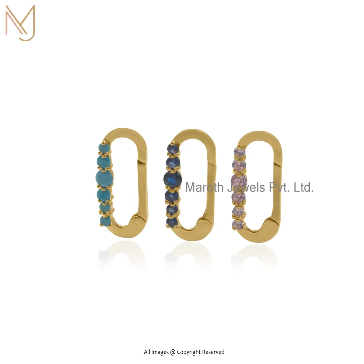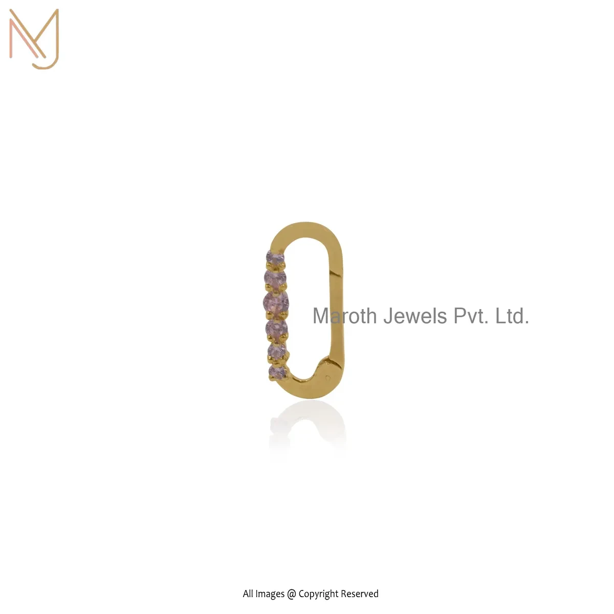 Wholesale 925 Silver Yellow Gold Plated Cubic Zircon Oval Enhancer Lock Charm Holder Jewelry