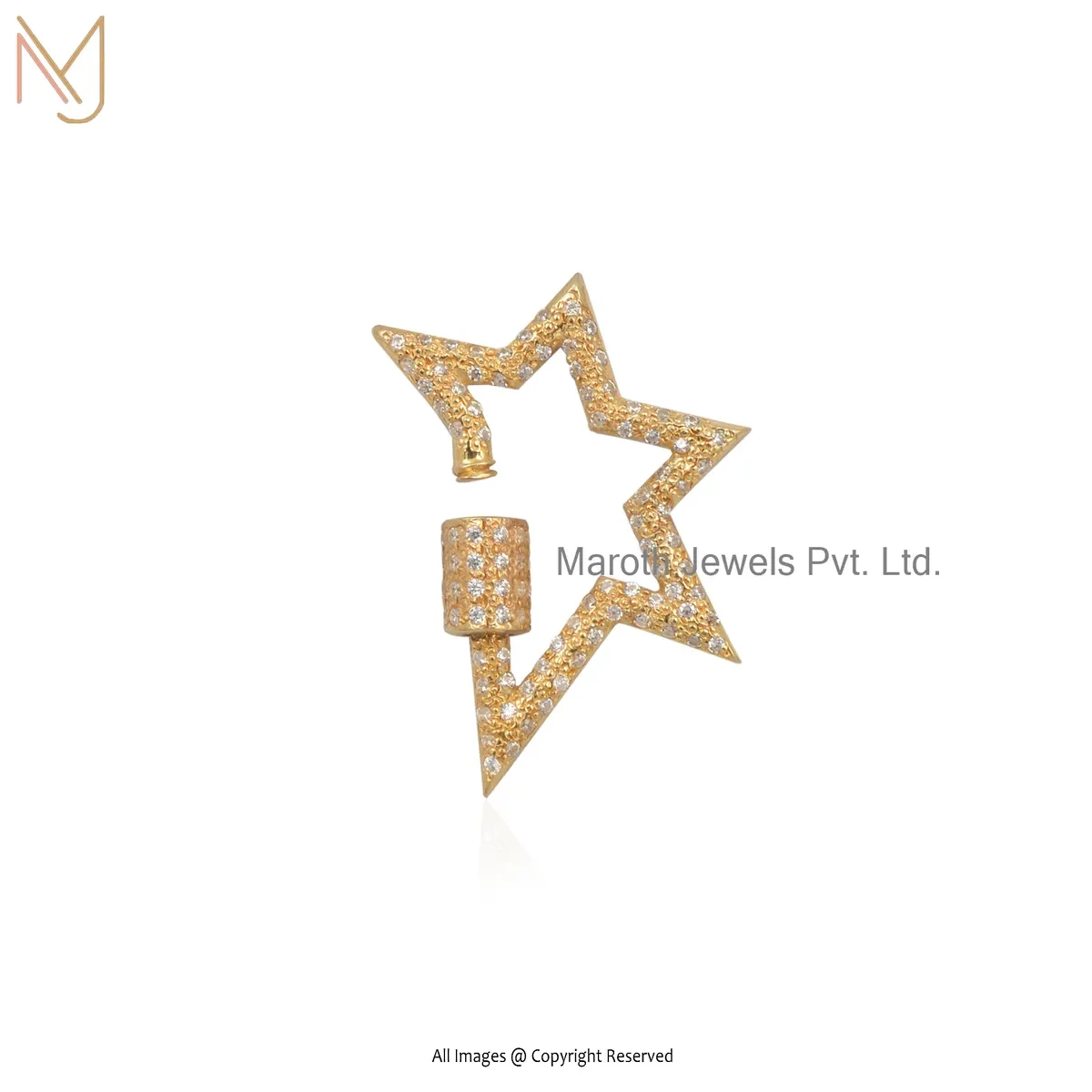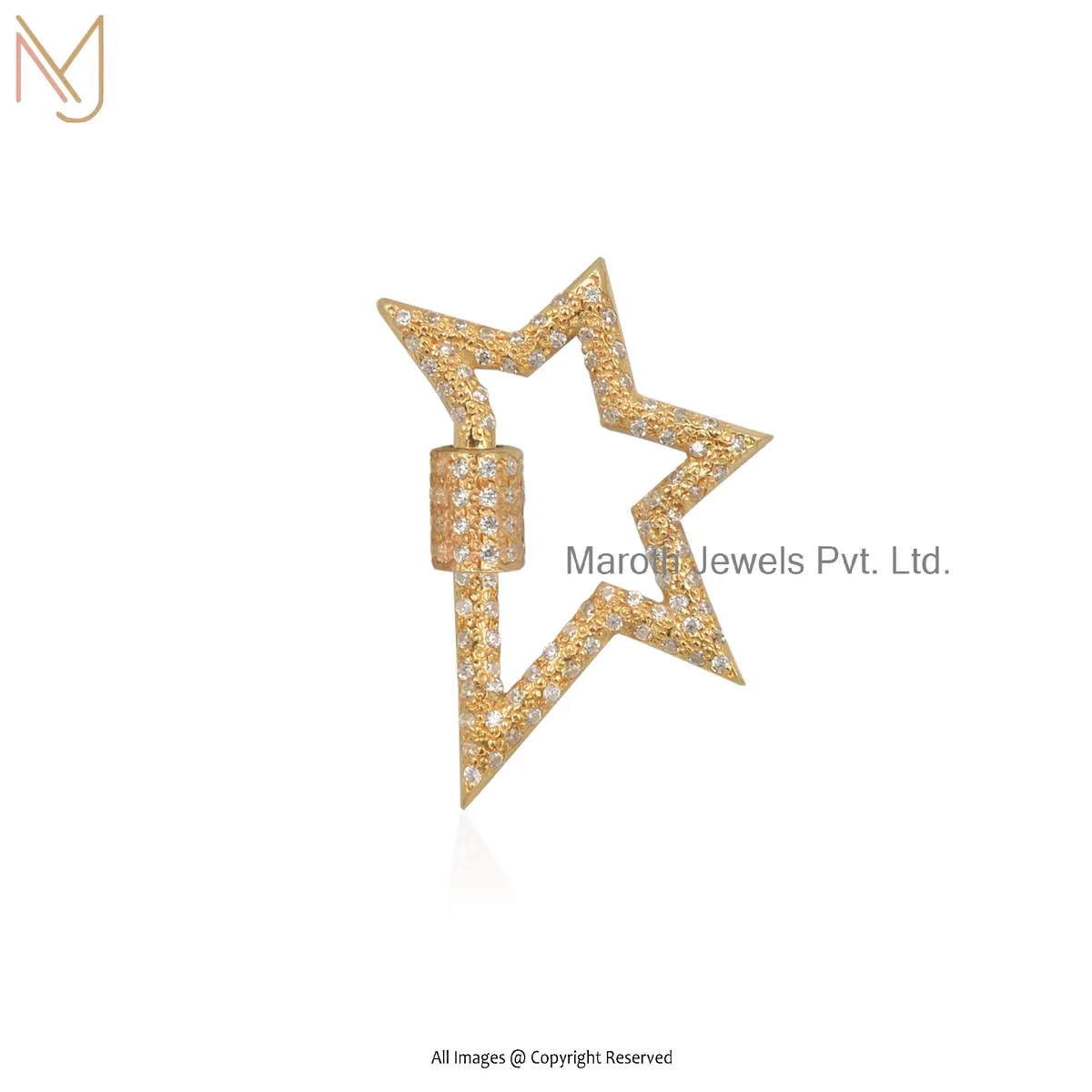 Wholesale 925 Silver Yellow Gold Plated Cubic Zircon Star Carabiner Lock Jewelry
