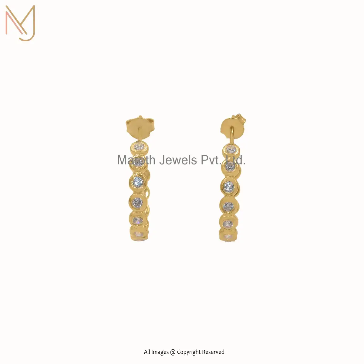 Wholesale 925 Silver Yellow Gold Plated CZ White Hoop Earrings