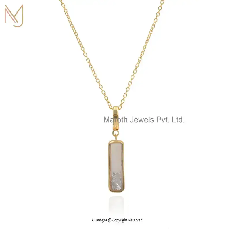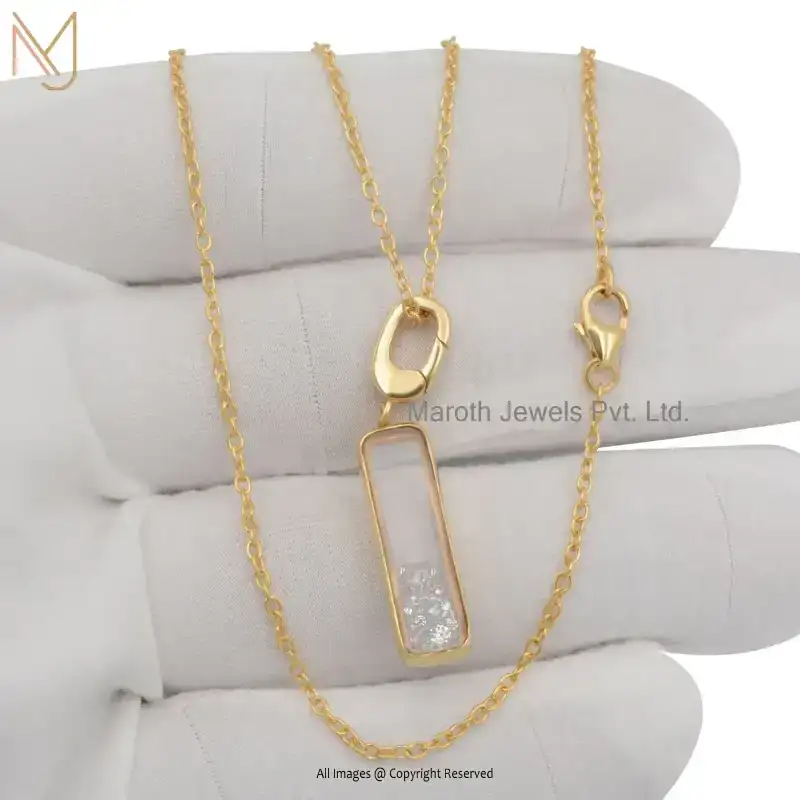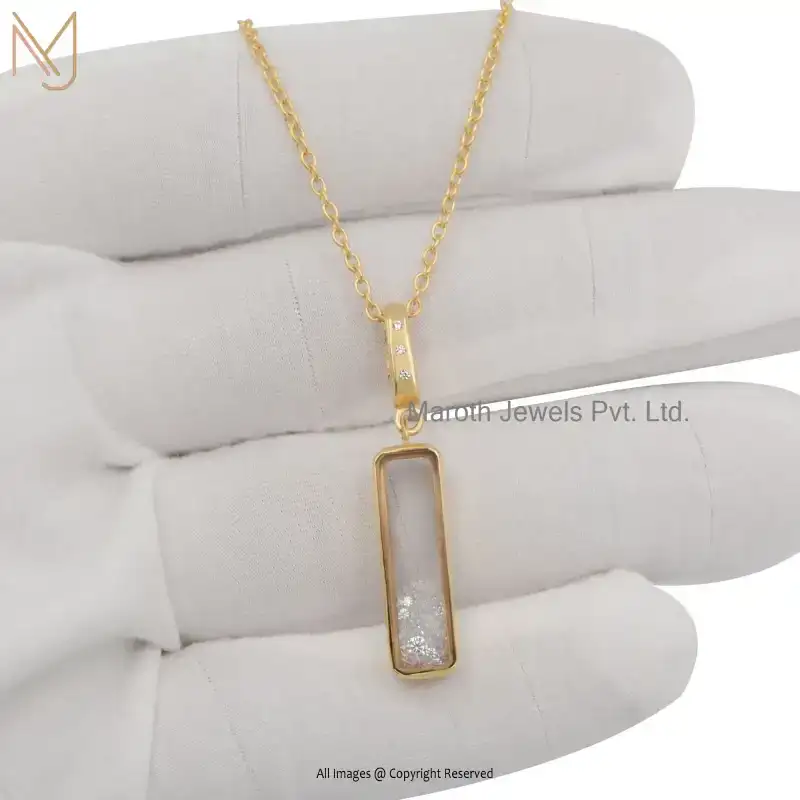 Wholesale 925 Silver Yellow Gold Plated Diamond Crystal Quartz Beach Bar Pendant