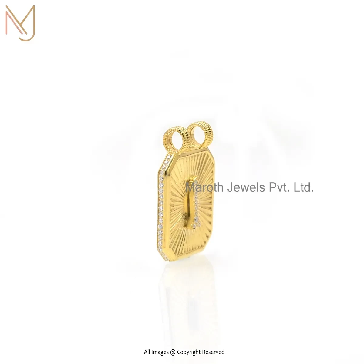 Wholesale 925 Silver Yellow Gold Plated Diamond & Cubic Zircon Initial Alphabet Charm Pendant