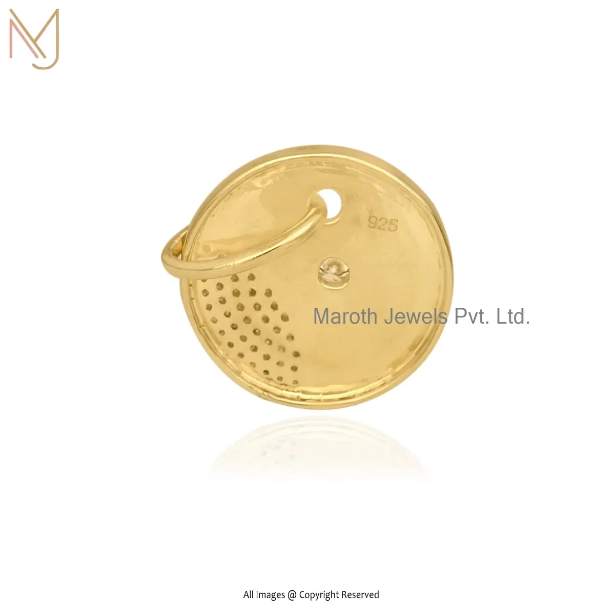 Wholesale 925 Silver Yellow Gold Plated Diamond & Moissanite Gemstone Round Disc Pendant
