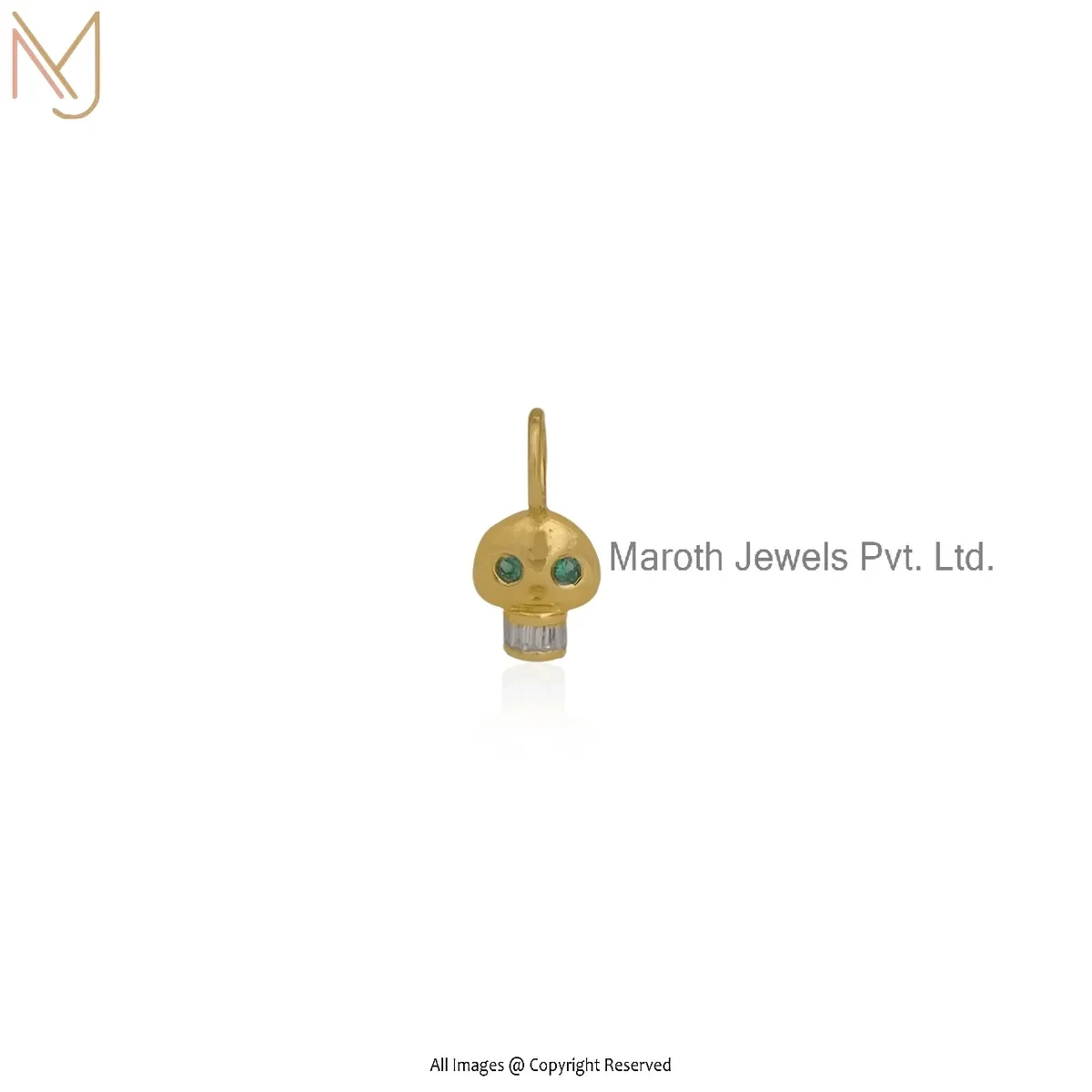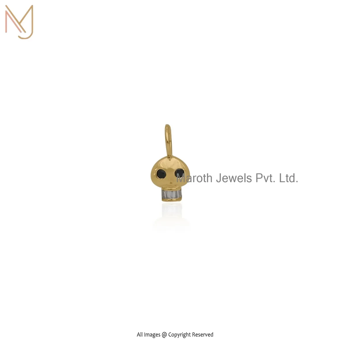 Wholesale 925 Silver Yellow Gold Plated Diamond & Ruby Gemstone Baguette Skull Pendant