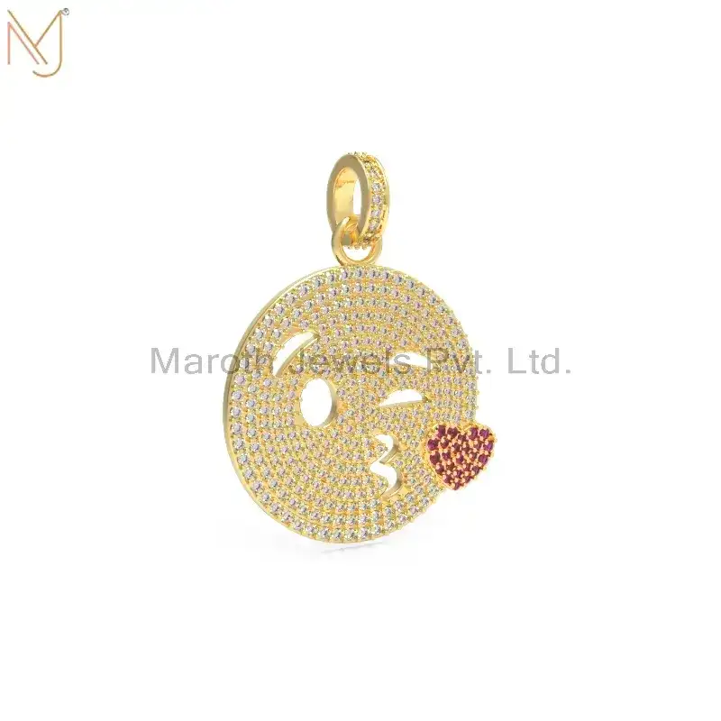 Wholesale 925 Silver Yellow Gold Plated Diamond & Ruby Gemstone Blowing Kiss Pendant Jewelry