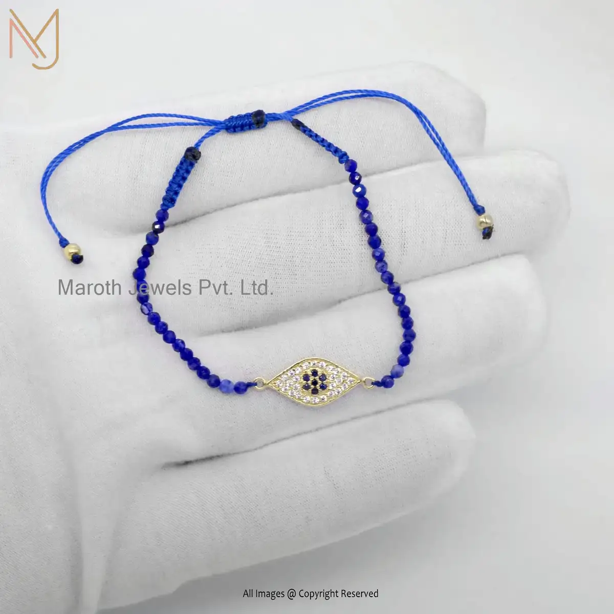 Wholesale 925 Silver Yellow Gold Plated Evil Eye Cubic Zircon Lapiz Beads Bracelet