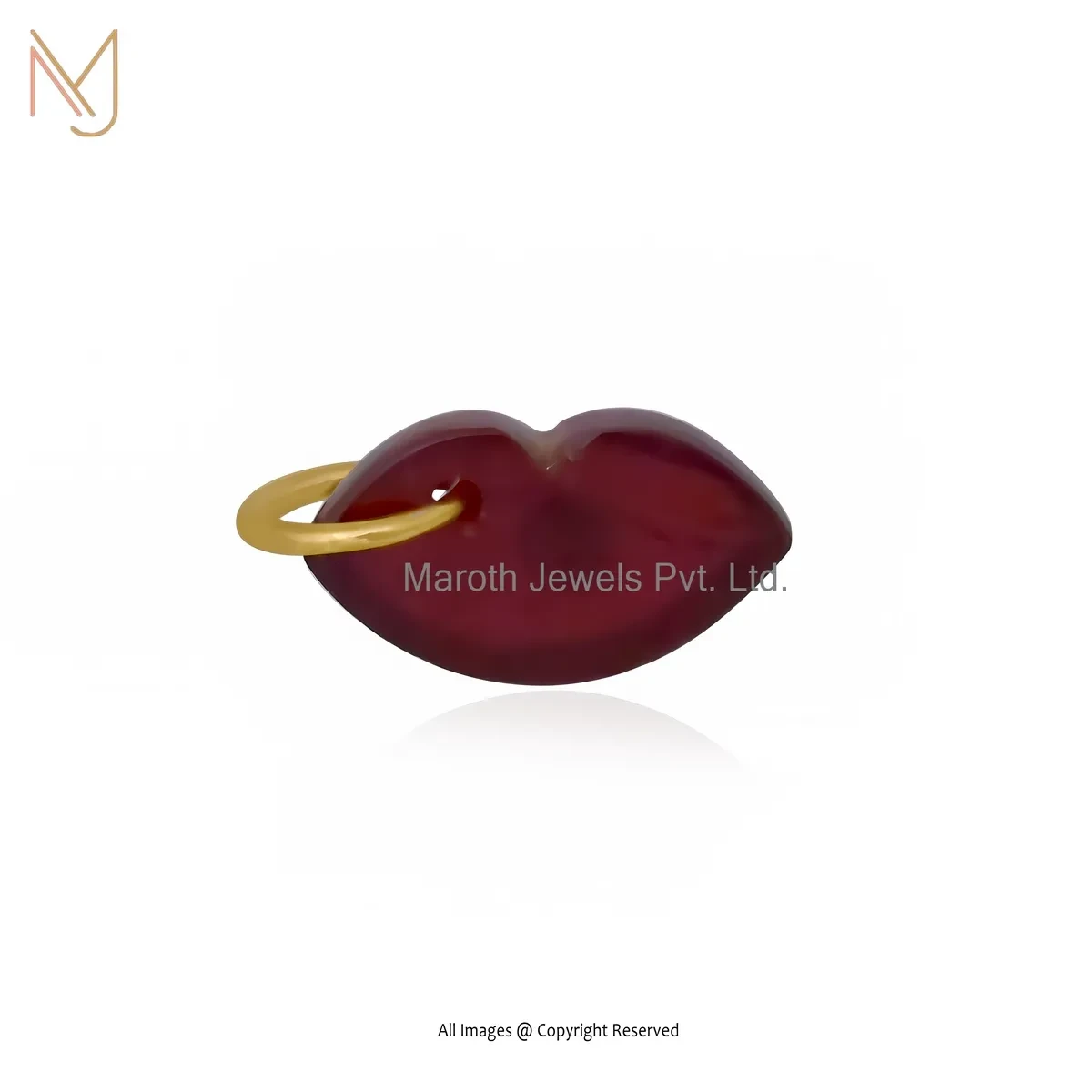 Wholesale 925 Silver Yellow Gold Plated Garnet Cubic Zircon Gemstone Lips Pendant