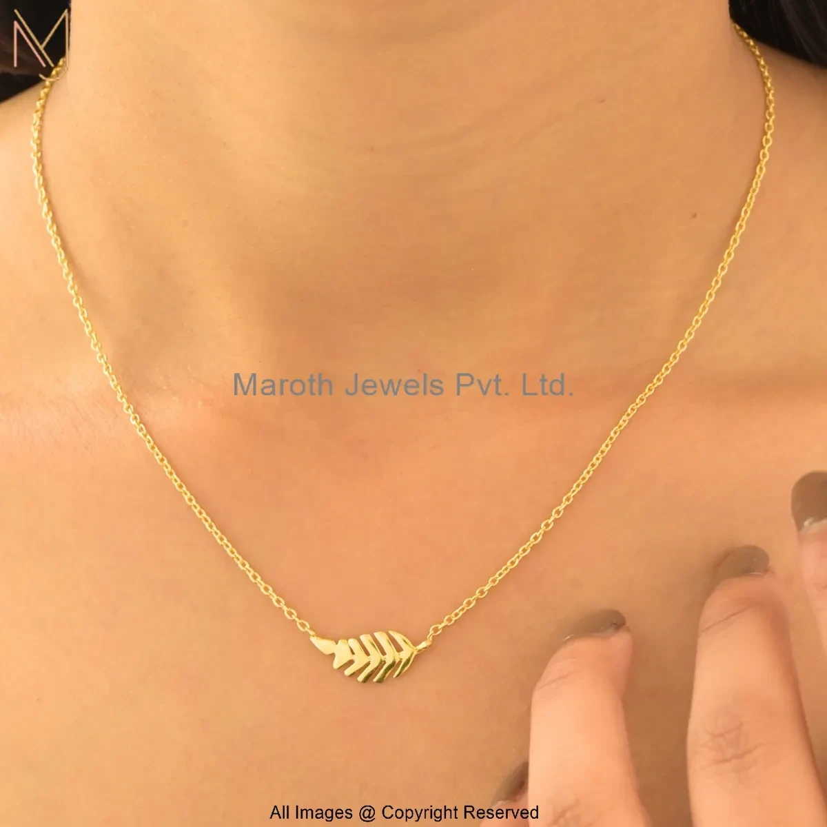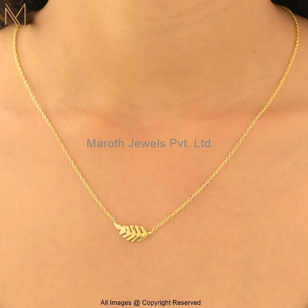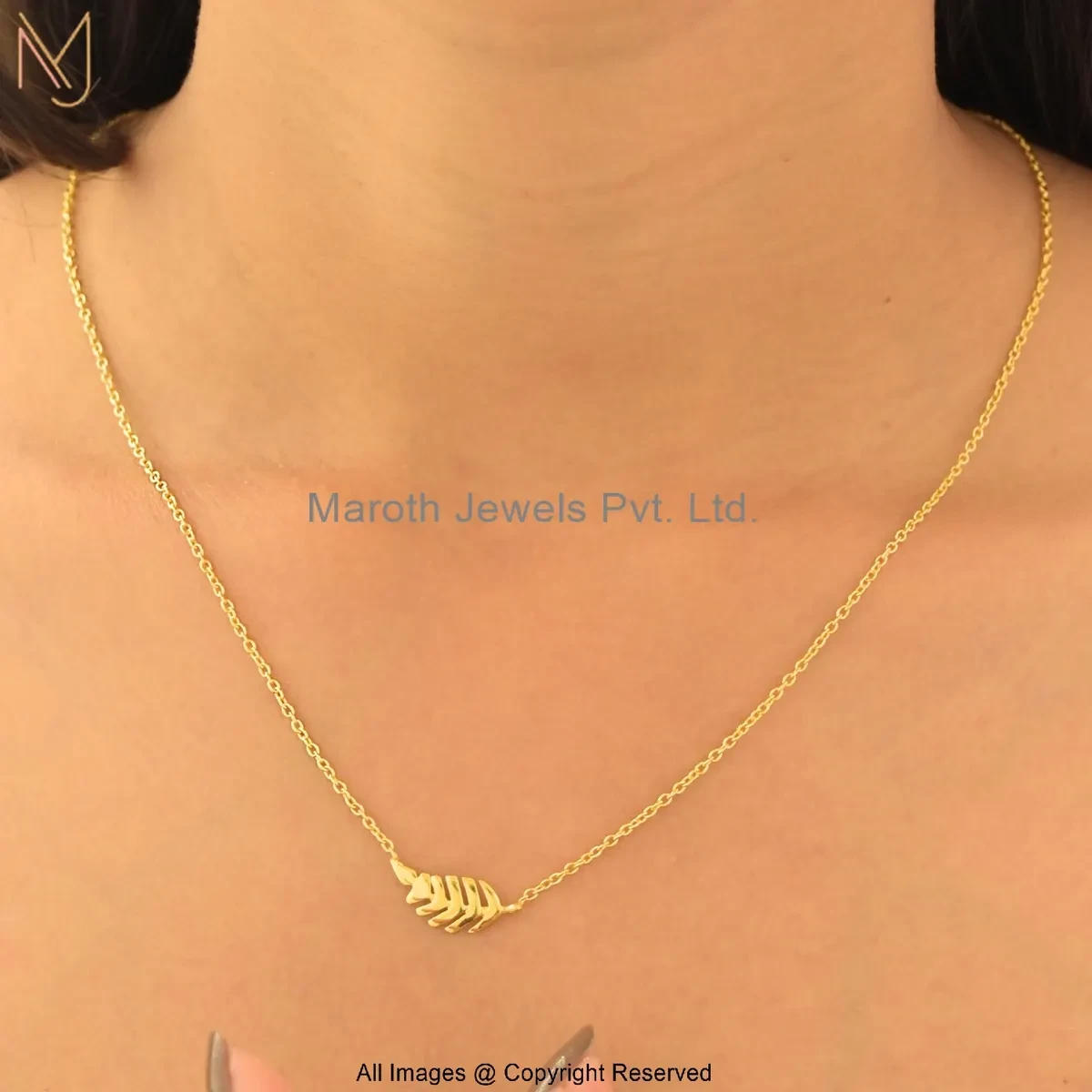 Wholesale 925 Silver Yellow Gold Plated “Gold-Tone Wheat Leaf Motif Necklace” Jewelry