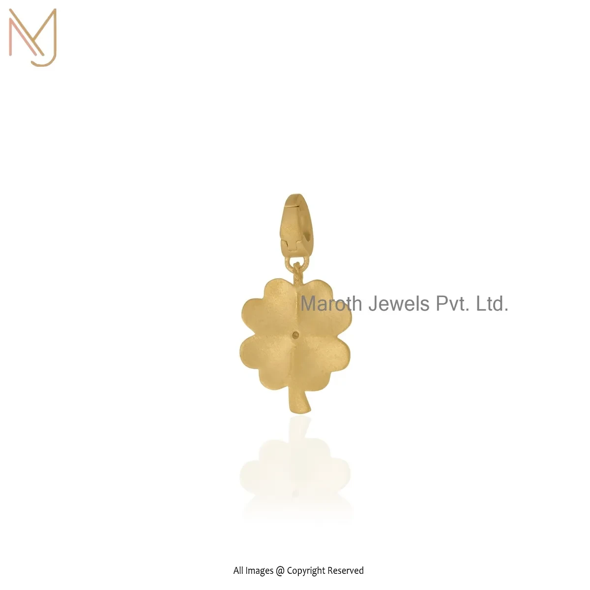 Wholesale 925 Silver Yellow Gold Plated Green Cubic Zircon Four Leaf Clover Charm Pendant