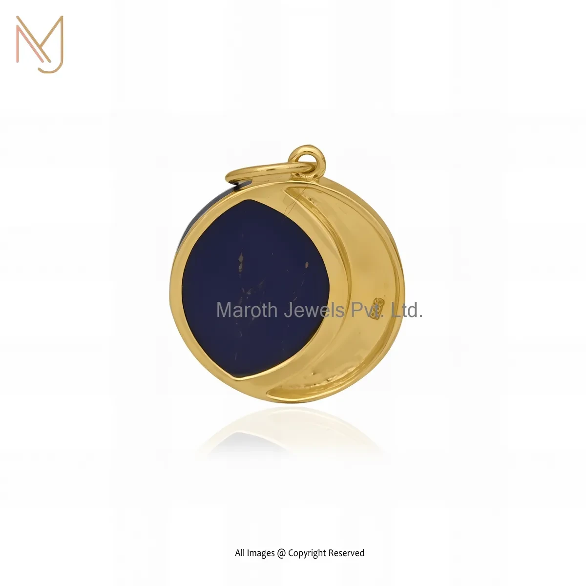 Wholesale 925 Silver Yellow Gold Plated Lapiz Lazuli And Moissanite Moon Disc Pendant