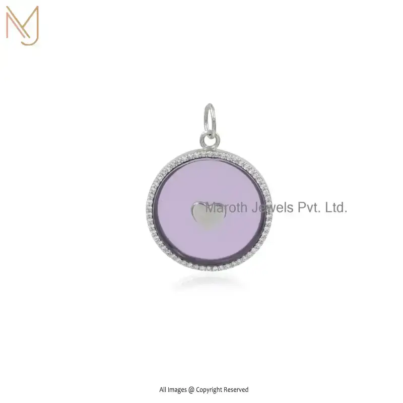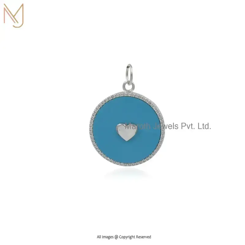 Wholesale 925 Silver Yellow Gold Plated Lapiz Lazuli & Cubic Zircon Round Heart Gemstone Pendant