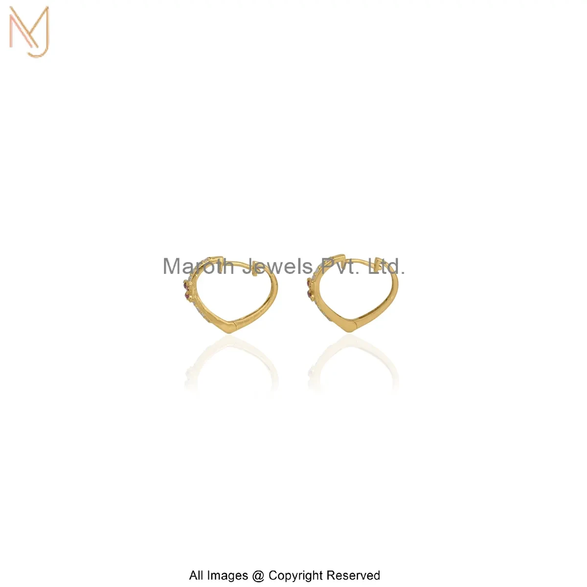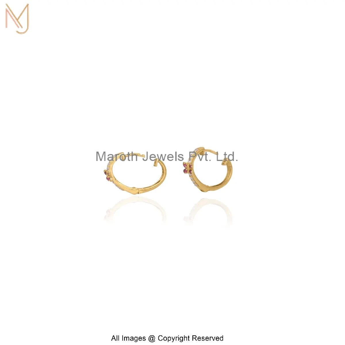 Wholesale 925 Silver Yellow Gold Plated Moissanite Butterfly Motif Stone Studded Gold Hoop Earrings