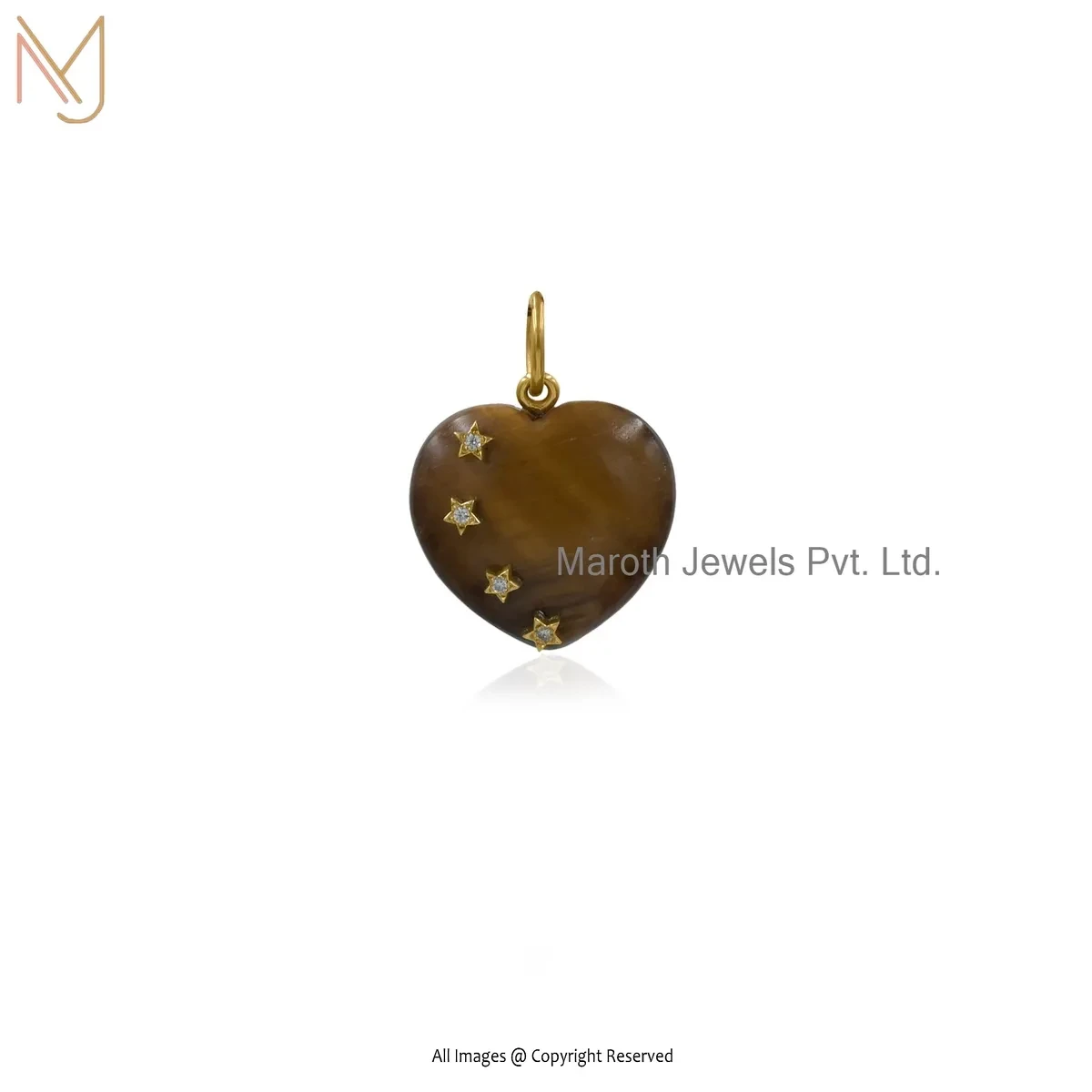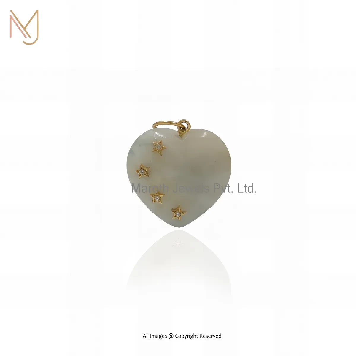 Wholesale 925 Silver Yellow Gold Plated Moissanite & Pink Opal Gemstone Heart Pendant