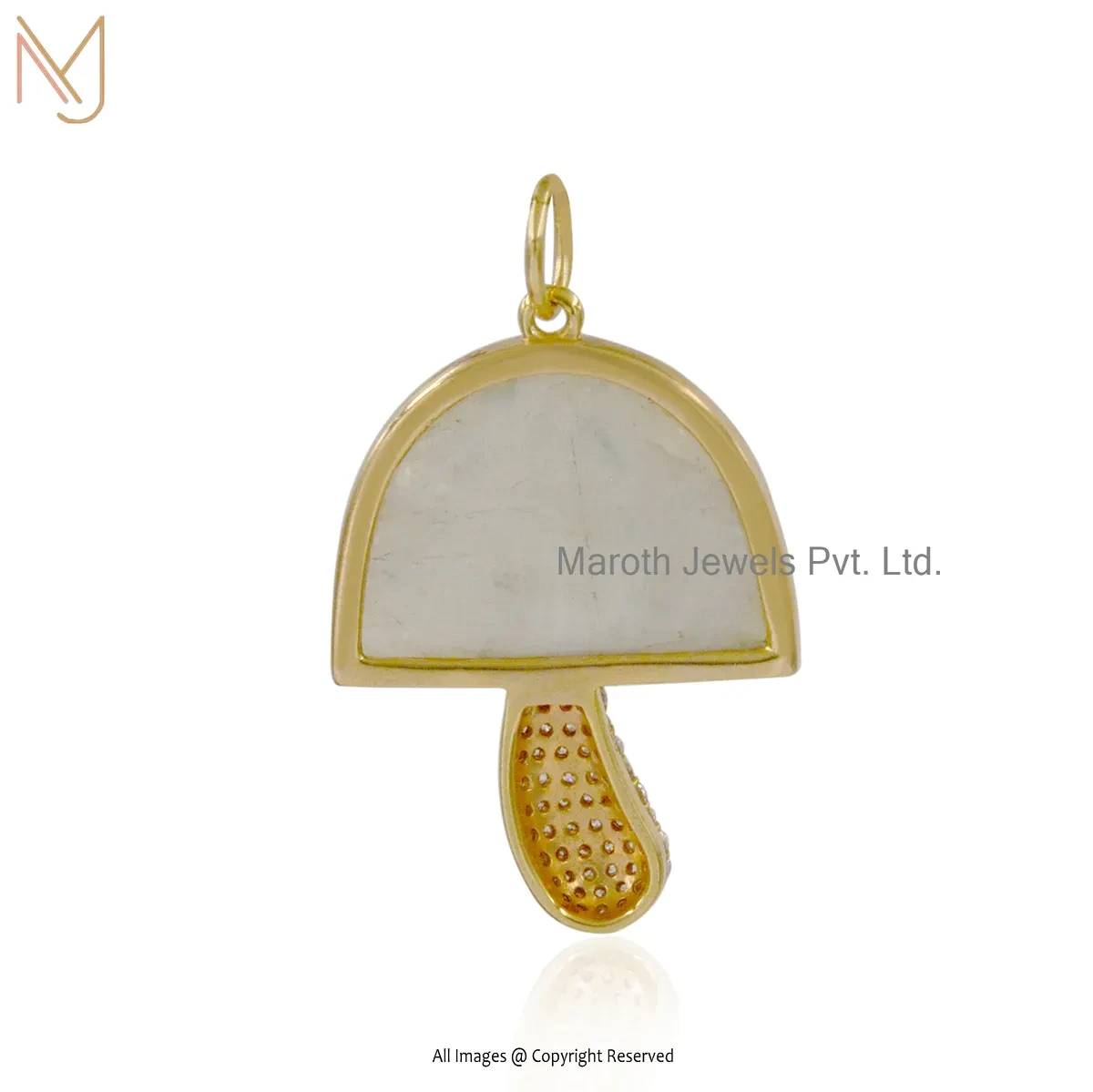 Wholesale 925 SIlver Yellow Gold Plated Moonstone And Multi Cubic Zircon Mushroom Pendant