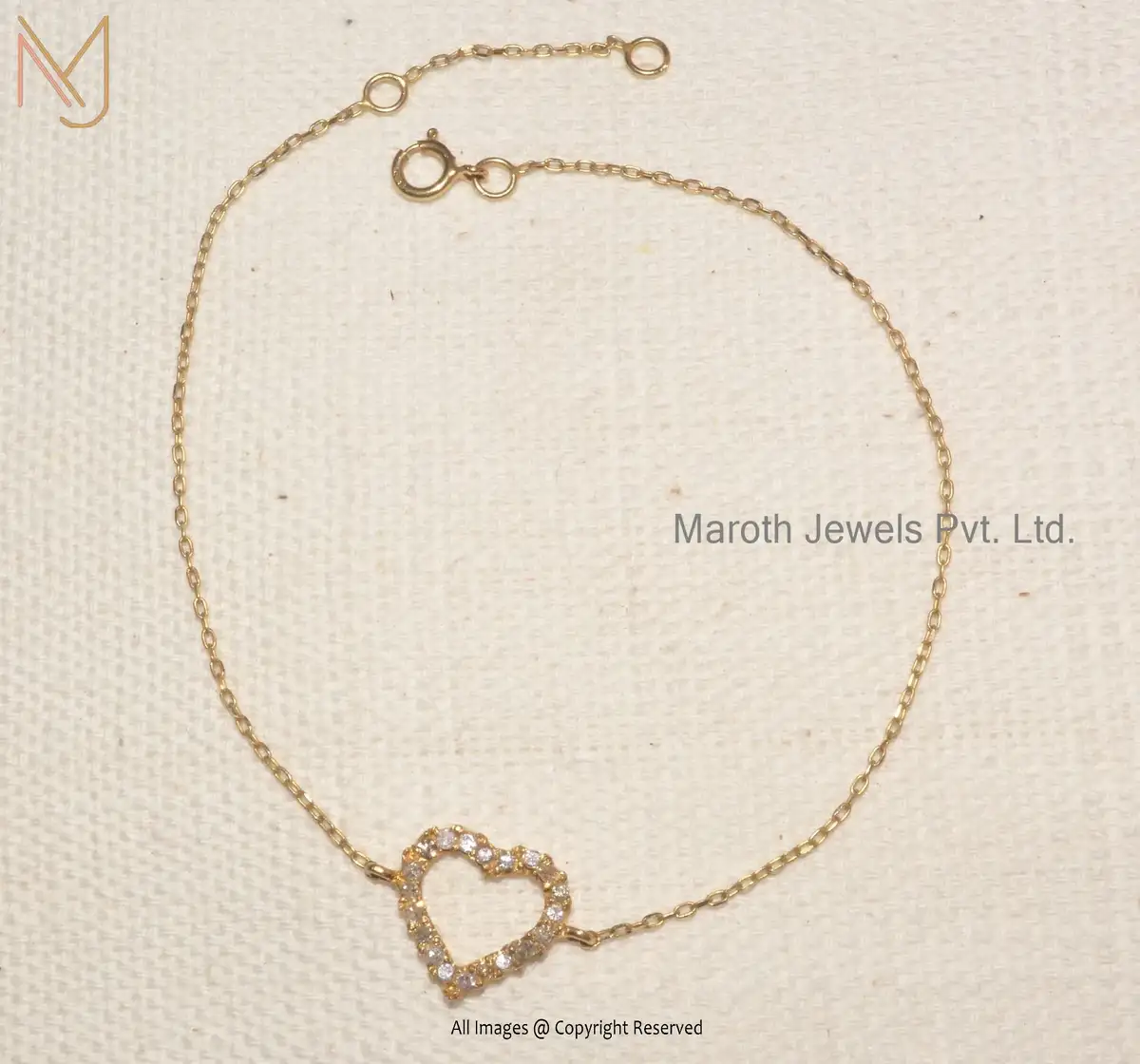 Wholesale 925 Silver Yellow Gold Plated Pave Diamond Heart Design Bracelet Jewelry
