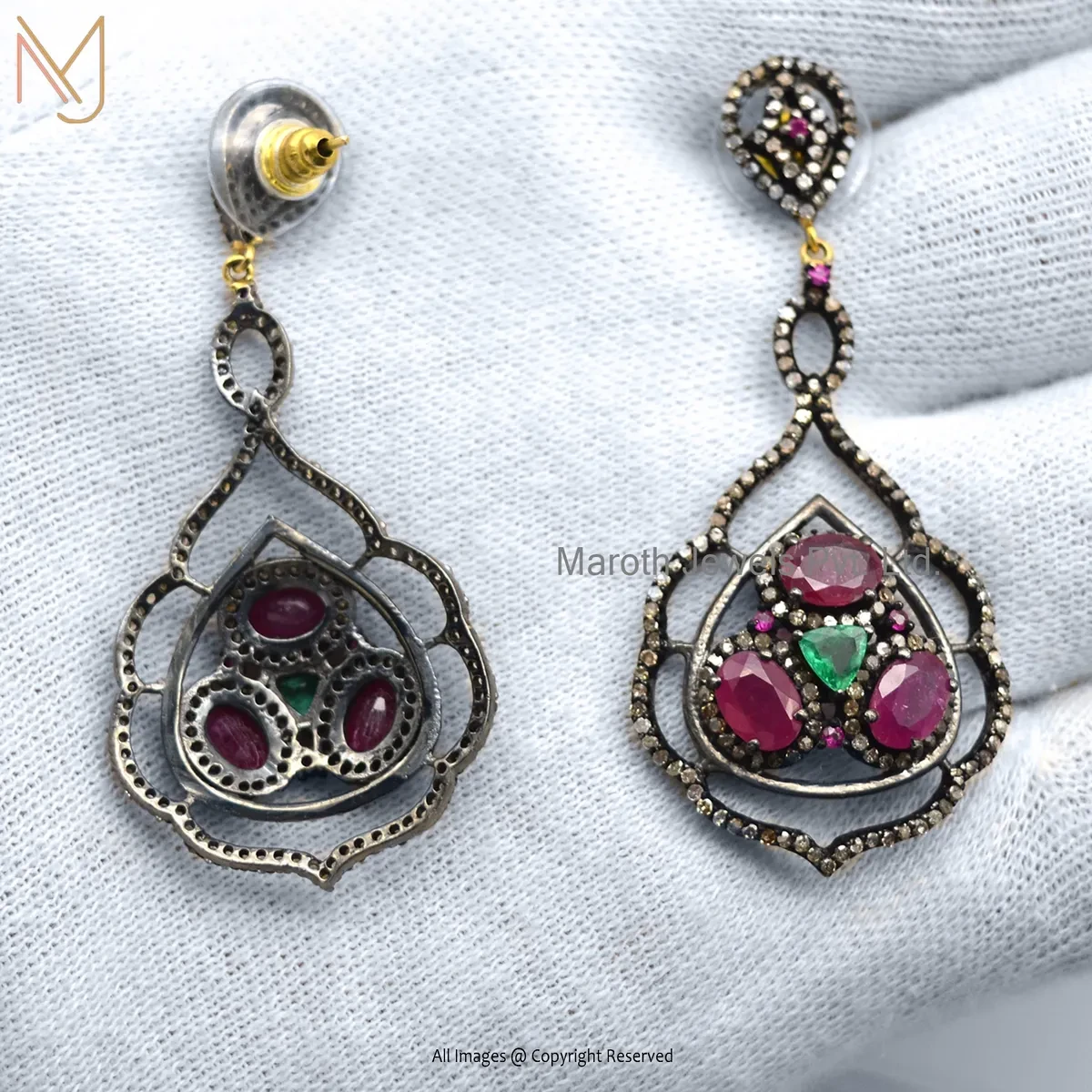 Wholesale 925 Silver Yellow Gold Plated Pave Diamond , Ruby , Emerald , Gemstone Dangle Earring