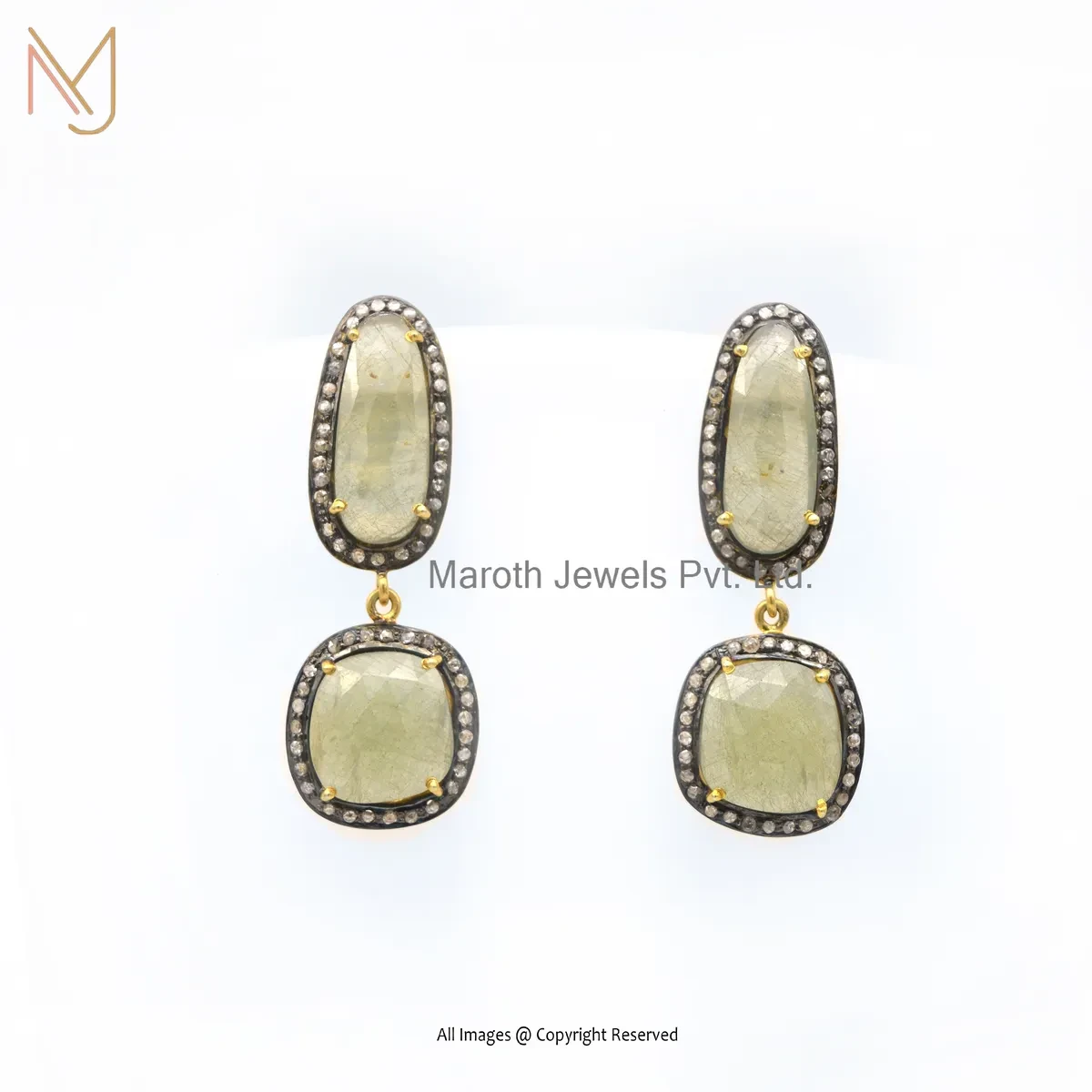 Wholesale 925 Silver Yellow Gold Plated Pave Diamond Yellow Sapphire Gemstone Drop Earring